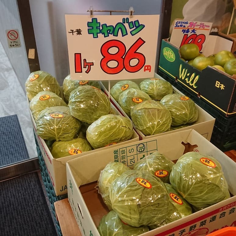 ≪キャベツ暴落か️≫ いきなりキャベツが安っすぐなった~️ いきなり昨日の半額みたいだ。