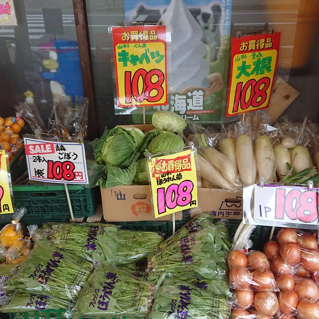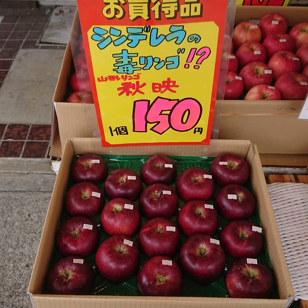 - ≪シンデレラの毒リンゴ️≫ 山形産りんご「秋映(あきばえ)」 色が赤すぎて どす黒い感じに でも食べればバッチリ美味しいんです。ジューシーで甘さも十分酸味もあるので爽やかな甘酸っぱさ️ ほうれん草、玉葱、人参、大根、キャベツ、長葱、ごぼう108円️ あとはお店で発見してね️
