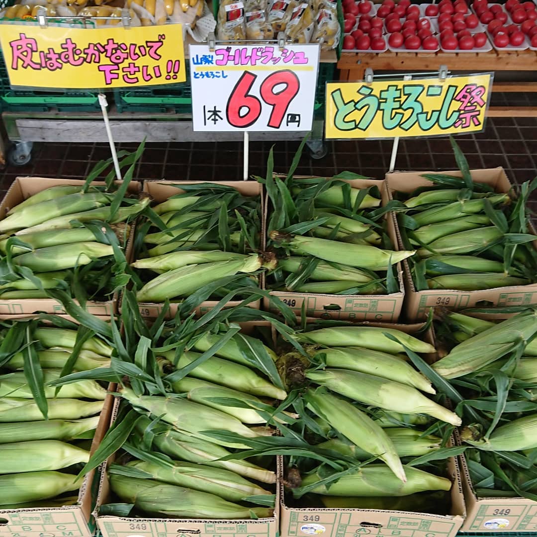 - 【とうもろこし祭り~️】 市場でとうもろこしたっぷり確保できました~️ 本日も1本69円(税込)続行しま~す️ PS. あした水曜日は定休日ですよ。