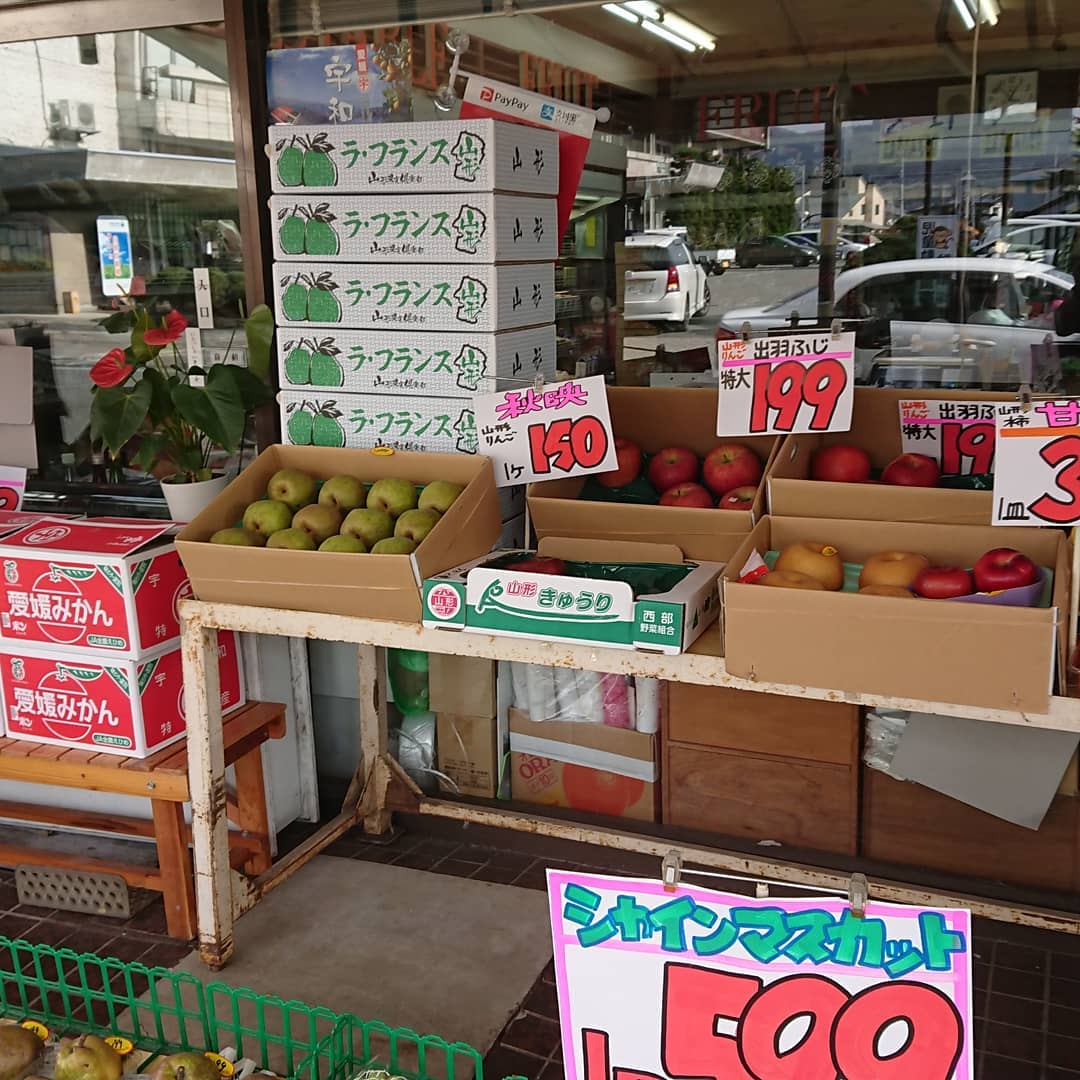 - 【ぶどう終盤️】 巨粒ピオーネ 大房シャインマスカット ラ・フランス12玉2,990円 バナナ88円~ ソフトクリームコーナーのブルーシート撤去️