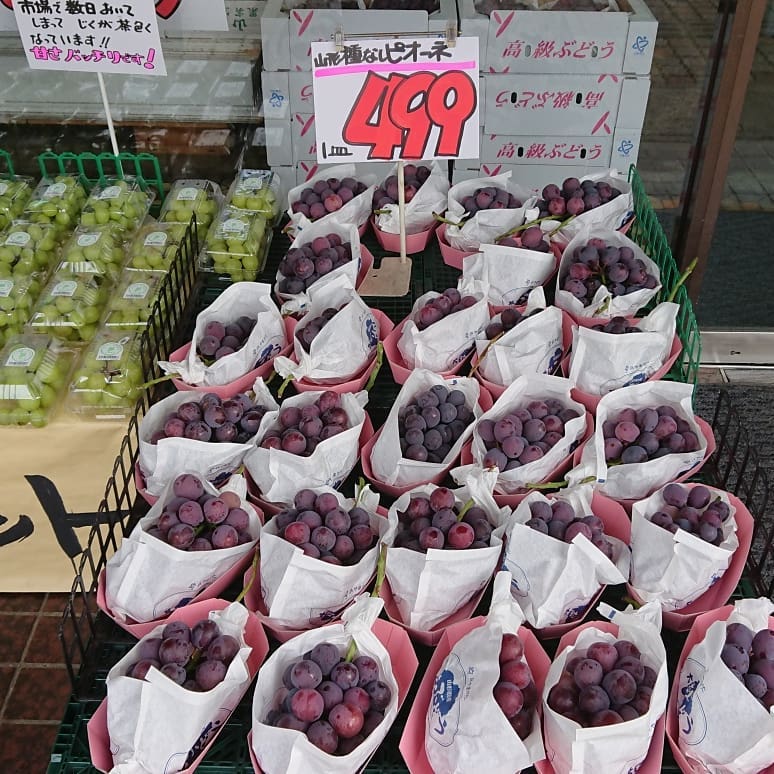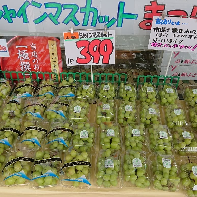 - 【フィーバースタート️】 ≪種無しピオーネ≫ 超巨大な房(房幅がボールペン位)が777円️ その超巨大以外の巨大な房までは499円 【シャインマスカットまつり】 シャインマスカット399円 訳あり(市場で在庫) 【フィリピンバナナ】 フィリピンバナナ88円 【極早生みかん】 愛媛極早生みかん1皿199円️ @ クラッカー