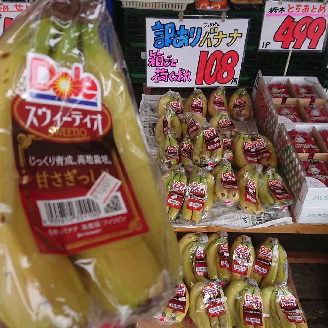 【訳あり大放出】 重ねて移動中のバナナが転倒️荷崩れしました。 まだ青みが残っていて固めで、箱ごと倒れたのでダメージは少ないと思うのですが… 思いきって108円で処分価格️ View this post on Instagram A post shared by Shigemi Satou (@s.shigemi) Posted by Intagrate v1.9.7