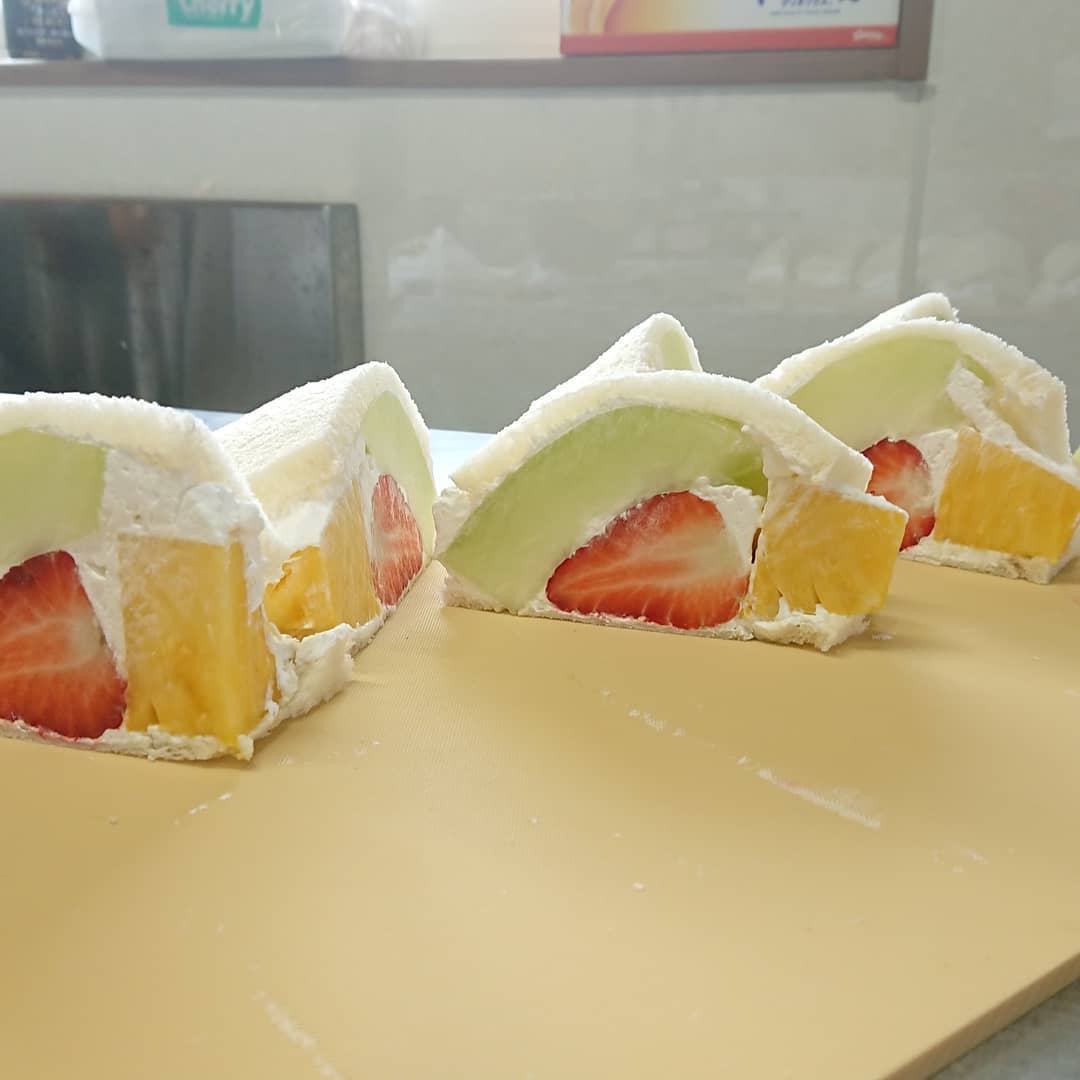 - クラッカーのフルーツサンド ️ メロン苺パインは巨大だ 葡萄は輸入しか無くなりました。シャインマスカットを探してみたら、なんと1箱8万円が原価とのこと。夏まで待つことに️ ホイップも雪印メグミルクからタカナシに変えて様子をみています。