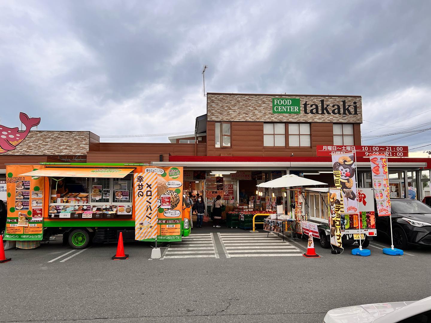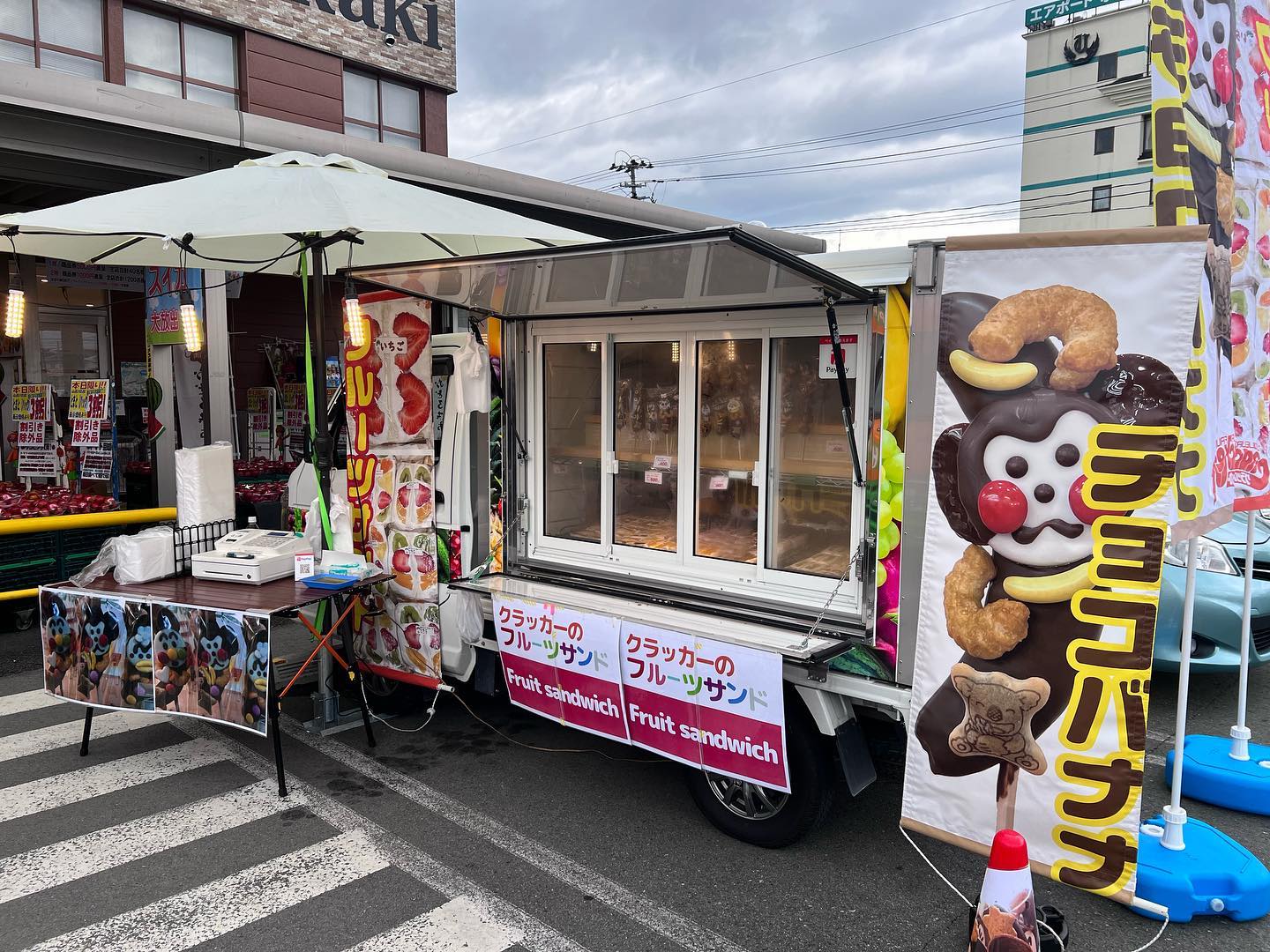 クラッカー緊急出動️ 急きょ夕方より移動販売しました。天童市フードセンターたかき交り江店入り口にセット完了️ 湿気でガラスが曇ります。夜19:30くらいまでの予定です。