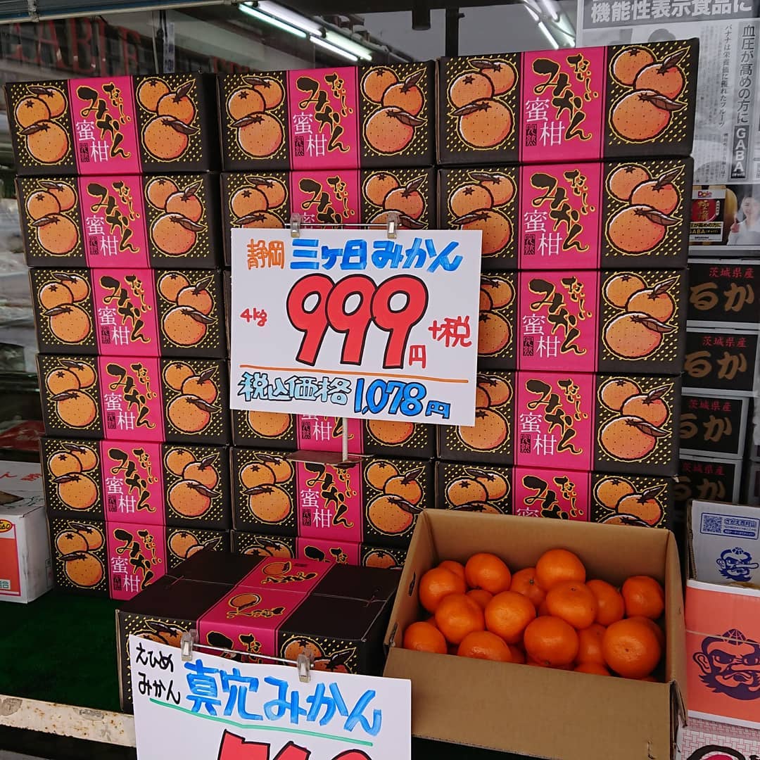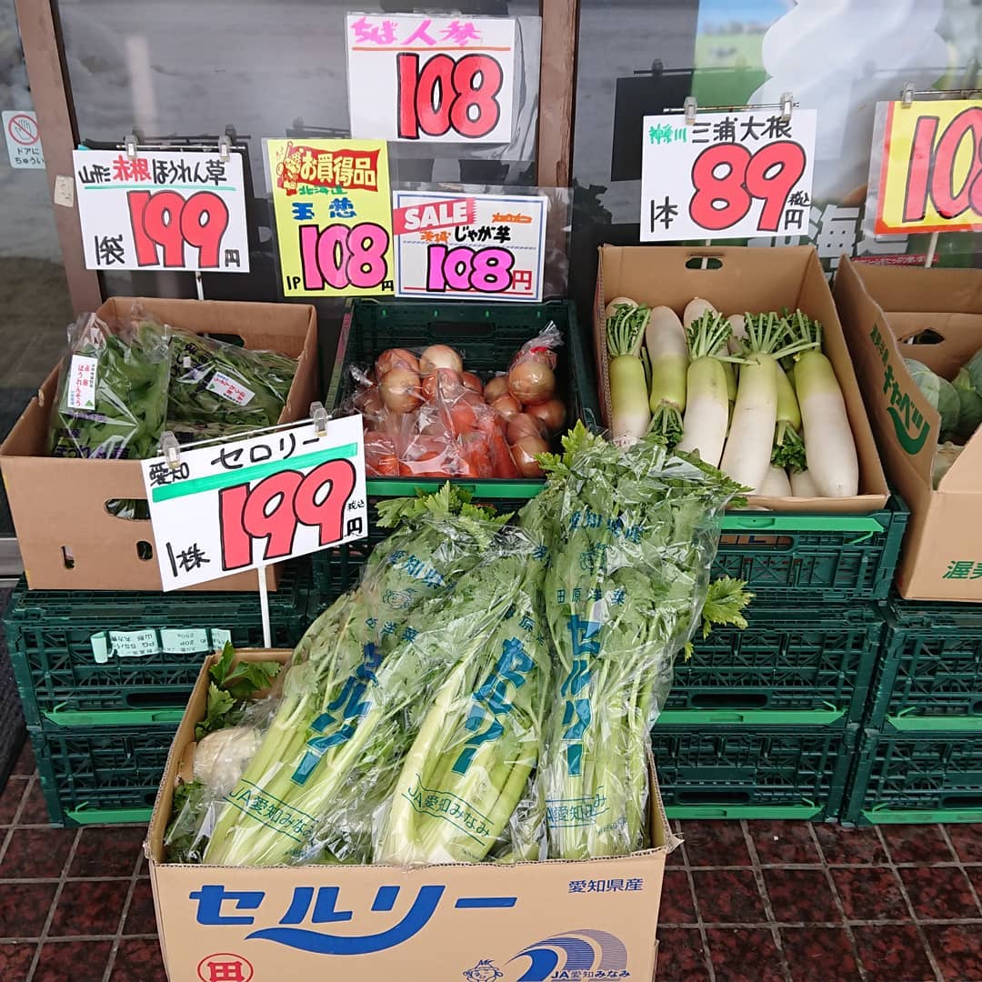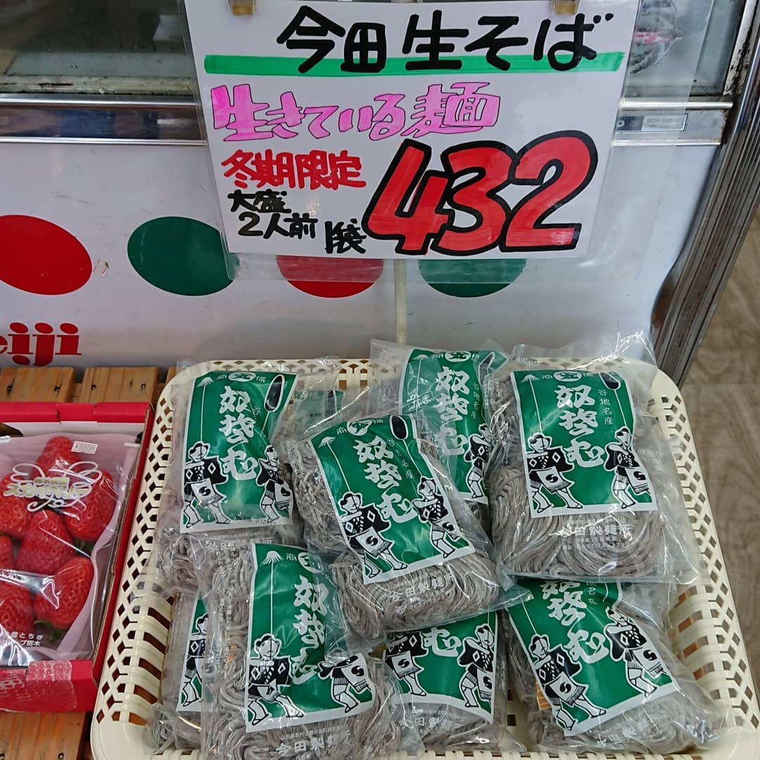 三浦大根 89円税込み セロリ199円税込️ 赤根ほうれん草199円税込️ 生しいたけ108円️ 切干大根大袋999円️こんなにたくさんいったい何本の大根を使っているんでしょう バナナ箱売り799円税込み 三ケ日みかん1箱1,078円(999税別) 一度食べるとハマってしまう『今田の生そば』 ゴールデンパインよりも上を行く『ハニーグロウ』 焼き芋≪名人焼き≫シルクスイート250円 安定の人気国産レモン95円