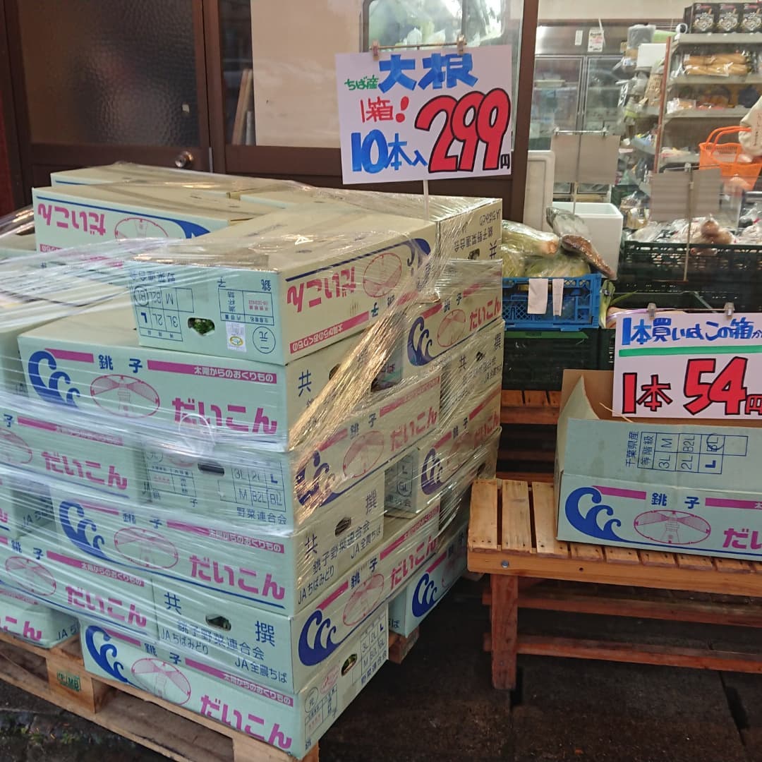 世の中『大根』余ってるの? 1箱300円にお釣りが来るよ。しかも10本入りで️農家の人からもらっていなければ「買い」だね️