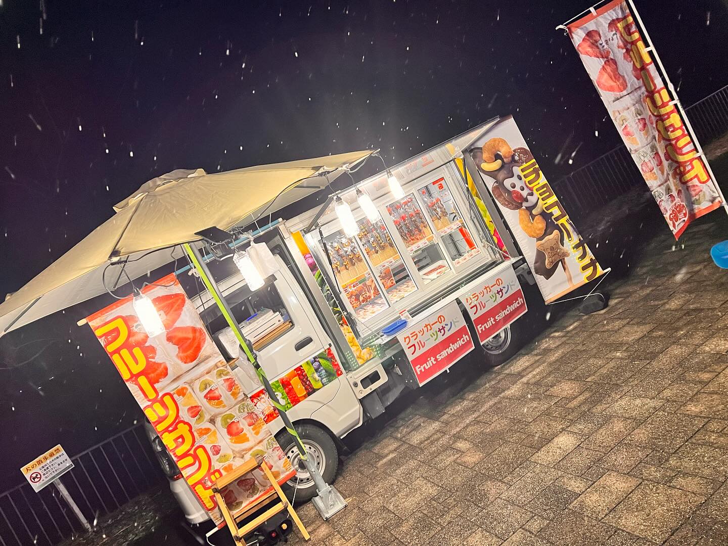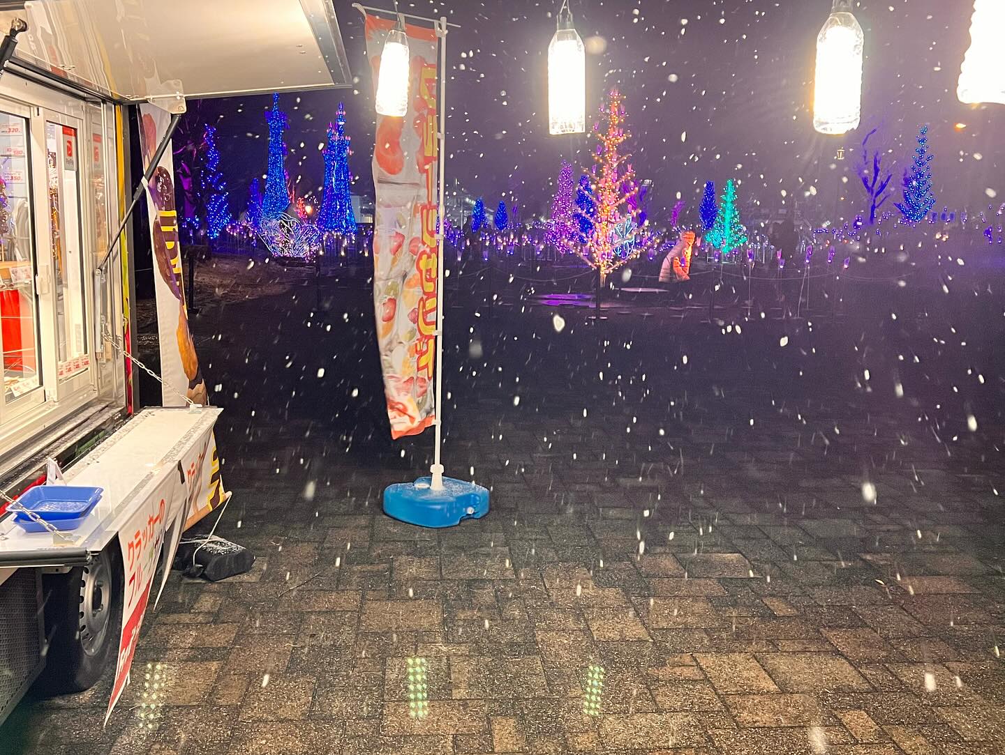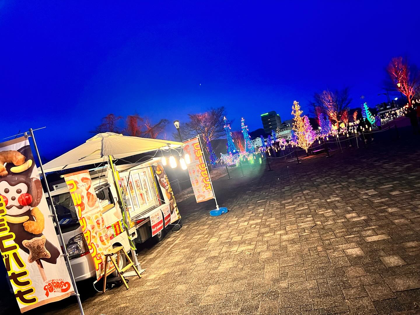 夜の部は、寒河江スマートインター前の 音と光のファンタジアに出店中! イルミネーションは2/12まで延長開催になりました。