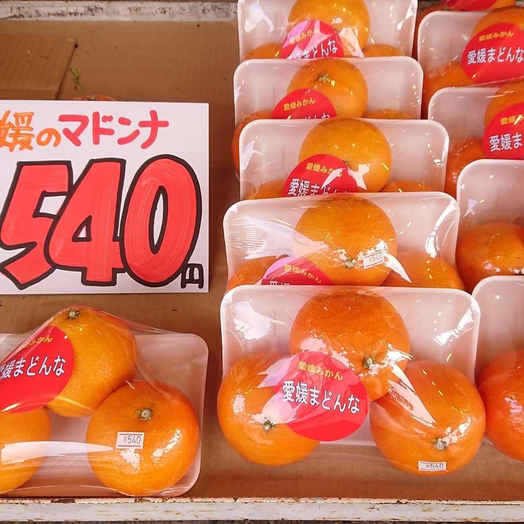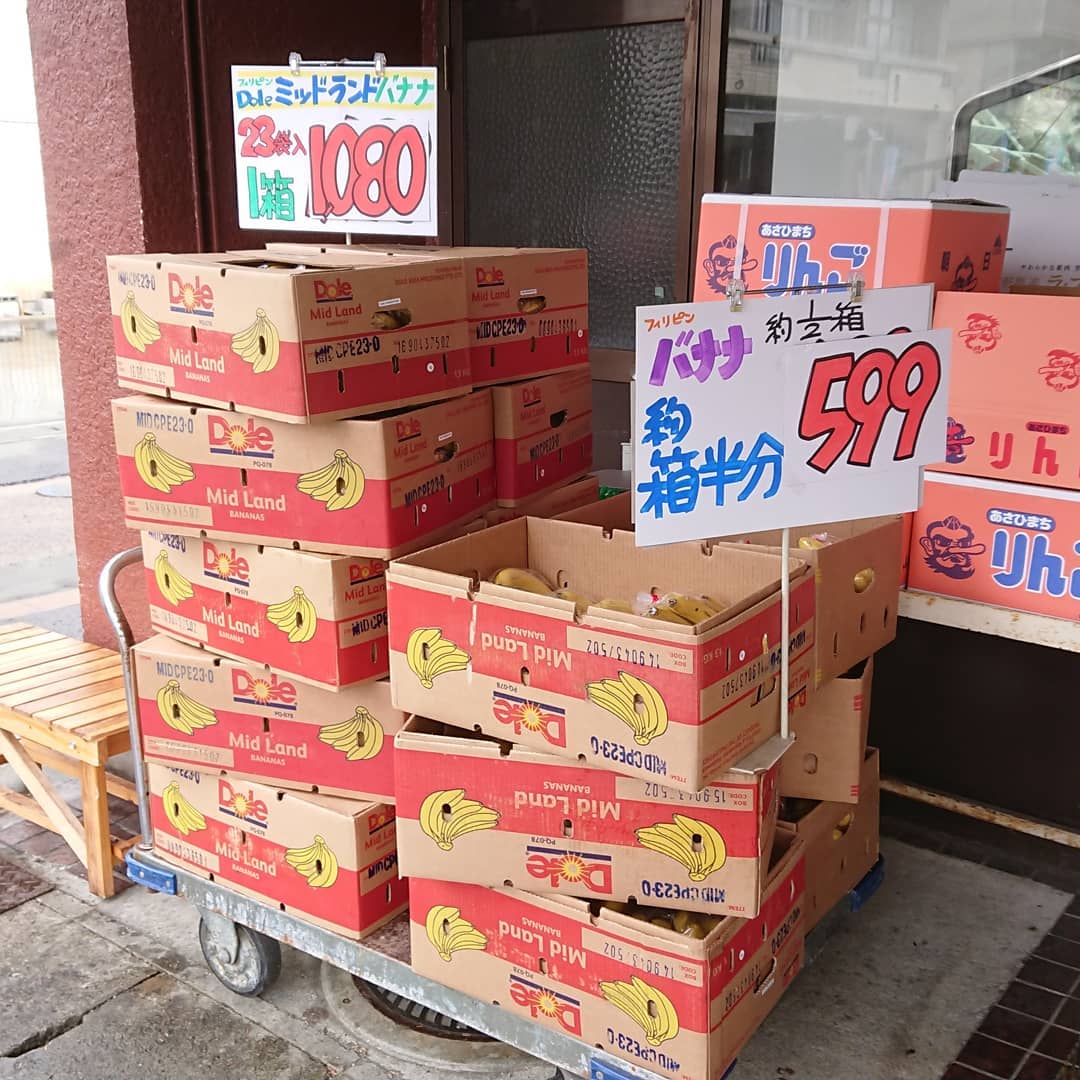 - 愛媛のまどんな️ 2個入り~4個入りパックが出来ました~️5kg箱売りは2,990円に️ バナナも1段ギアが上がりました。 13kg1箱(23袋入)1,080円 箱半分約(11袋入)599円 1袋69円️ 「ハニーグロウ」パイナップル ゴールデンパインよりも上を行くパイン️ 泥付きの長芋がお得ですよ。 GIの山形セロリ~もデカイ株で399円️