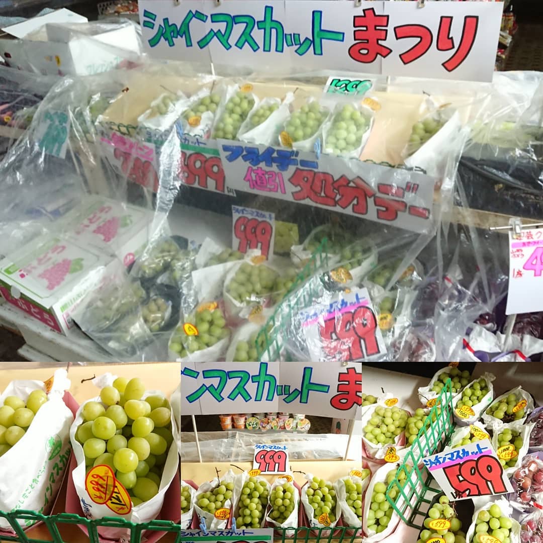 ≪シャインマスカットまつり~≫ 【Friday値引処分デー】 週末前のクリーンデー残業して売り場作り準備完了~️ シャインマスカットを更に値引きして在庫一掃の予定 週末には新しいもので、またまた『シャインマスカットまつり』続行️️といきたいものだ