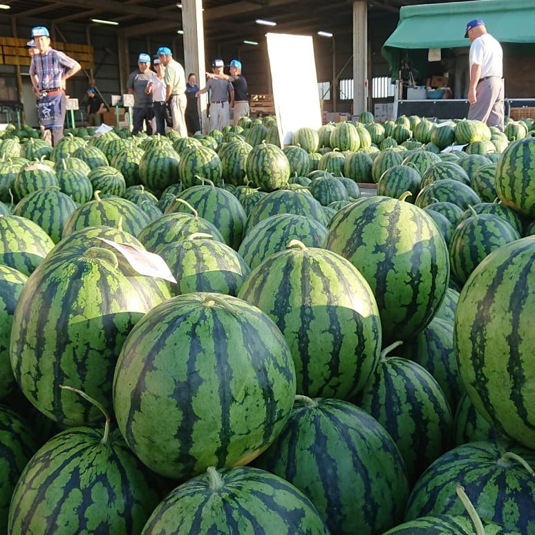 - ≪尾花沢すいか≫ 今朝も山のような出荷️(市場) なんとお店並べ中にひと山崩れて 道路にまでゴロゴロ~️ 転げたスイカは緊急値下げ️ 半額以下の500円ワンコイン️