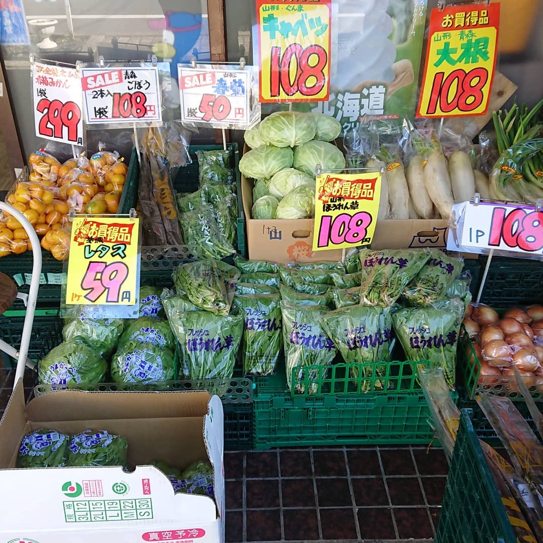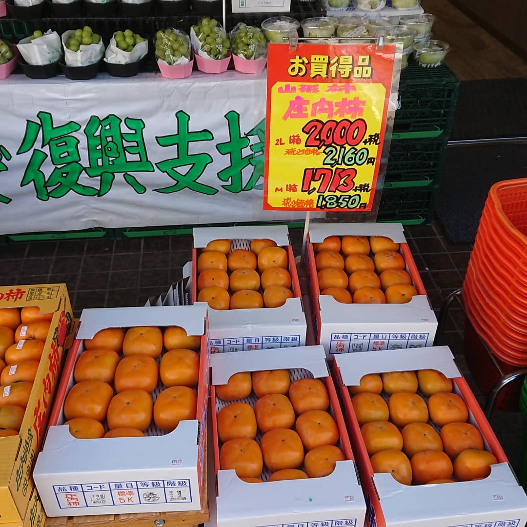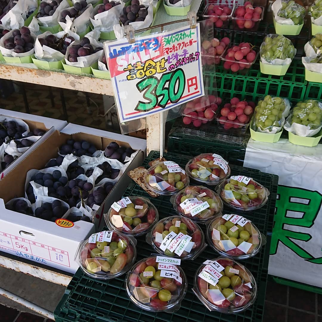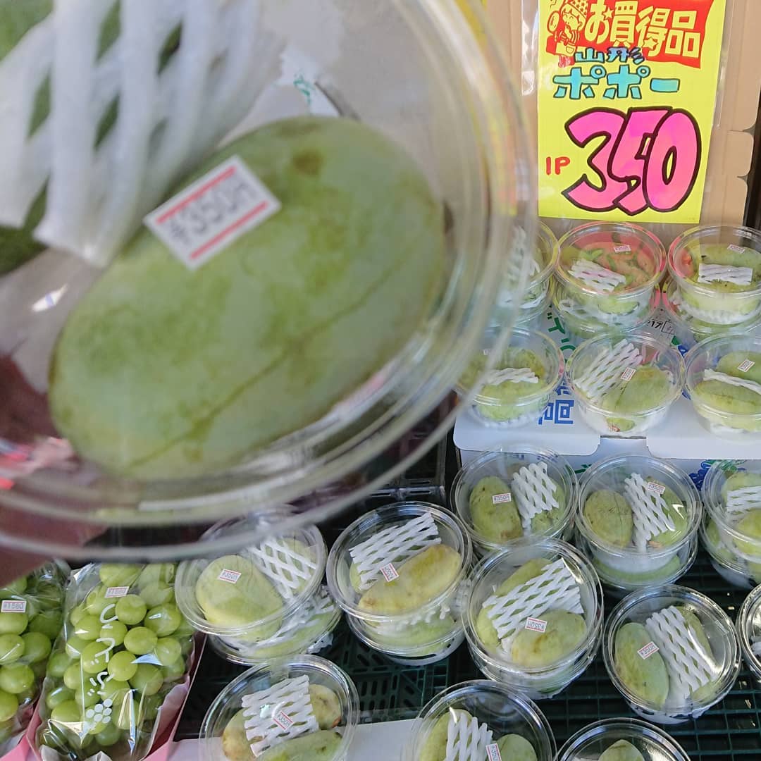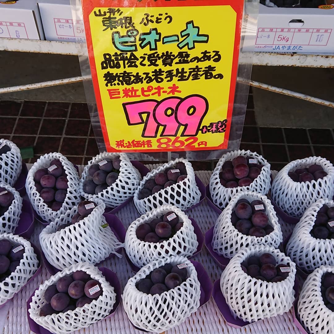 ≪巨大粒ピオーネ≫ 品評会で受賞歴あり、熱意ある若手生産者の見事なピオーネ️この巨粒が1000円切り~️の862円 ≪トロピカルフルーツ≫ 海野さ~ん「ポポー」入りましたよ~️ ≪生食用いちじく≫ 越の雫バナナの皮のように剥いて食べるのですね ≪シャインマスカット️699円≫ 今日のは大きめですね。山形産、早い者勝ちという感じです。ほか、1,000円台のシャインマスカットもいいところが揃っています。 ≪お野菜も安いっす≫ レタス59円 キャベツ108円 ほうれん草108円 大根108円️ ネギ、人参108円️ もう書ききれないので、お店で見てください デコシャル️ チョコソフト 焼き芋、バッチリですよ~️