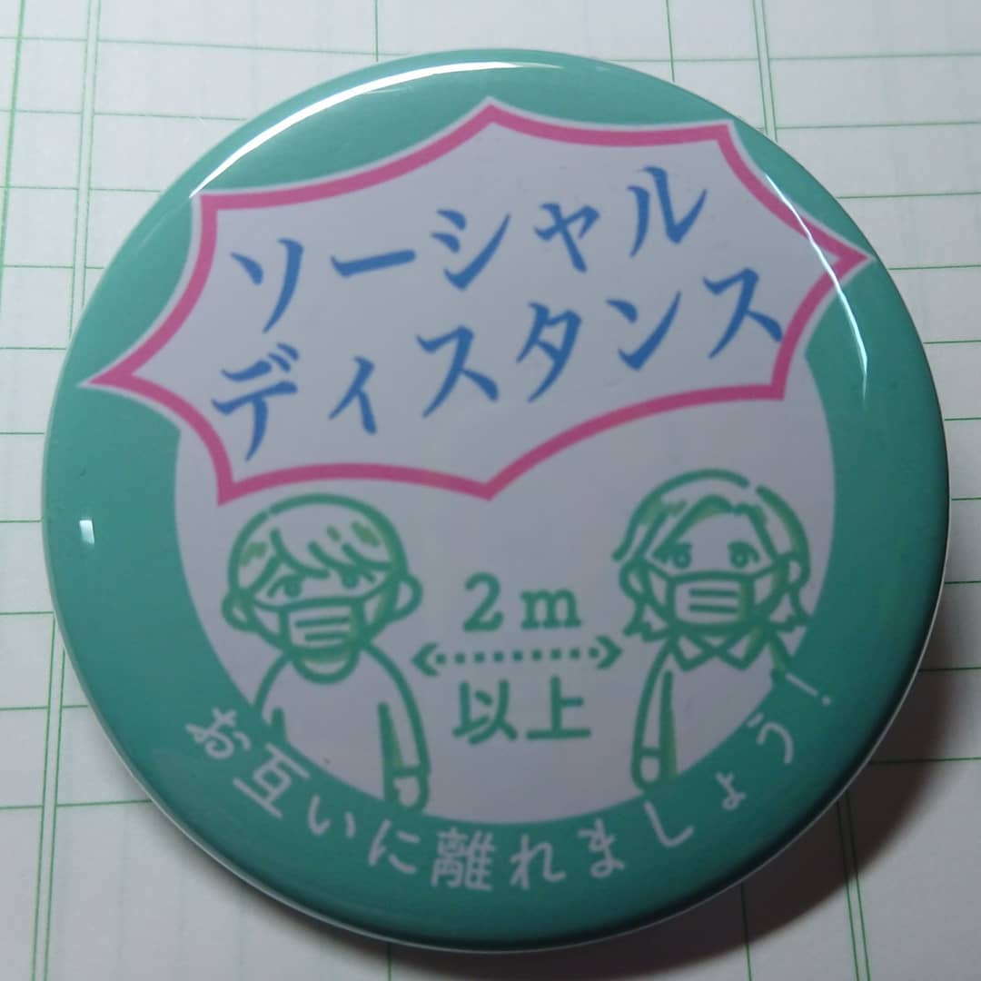 ◆◆◆予防に重要です️◆◆◆ 【Social Distance】 2m以上離れましょう~ なかなか口には出せませんが、このバッジで無言のアピールレジに並んでいるときなど肩に付けておけば後ろの人が距離をとってくれるかも️ 『ソーシャル ディスタンス️』 これで「うつりませんシリーズ」は全6種類になりました売っていますが、デコシャルチョコバナナを買うとおまけに貰えるよ~️ #新型コロナ #缶バッジ #デコシャル #57mm #チョコバナナのおまけ #socialdistancing #socialdistance #ソーシャルディスタンス #花粉症 #アレルギー #喘息 #すっぴん #予防です #花粉症缶バッジ