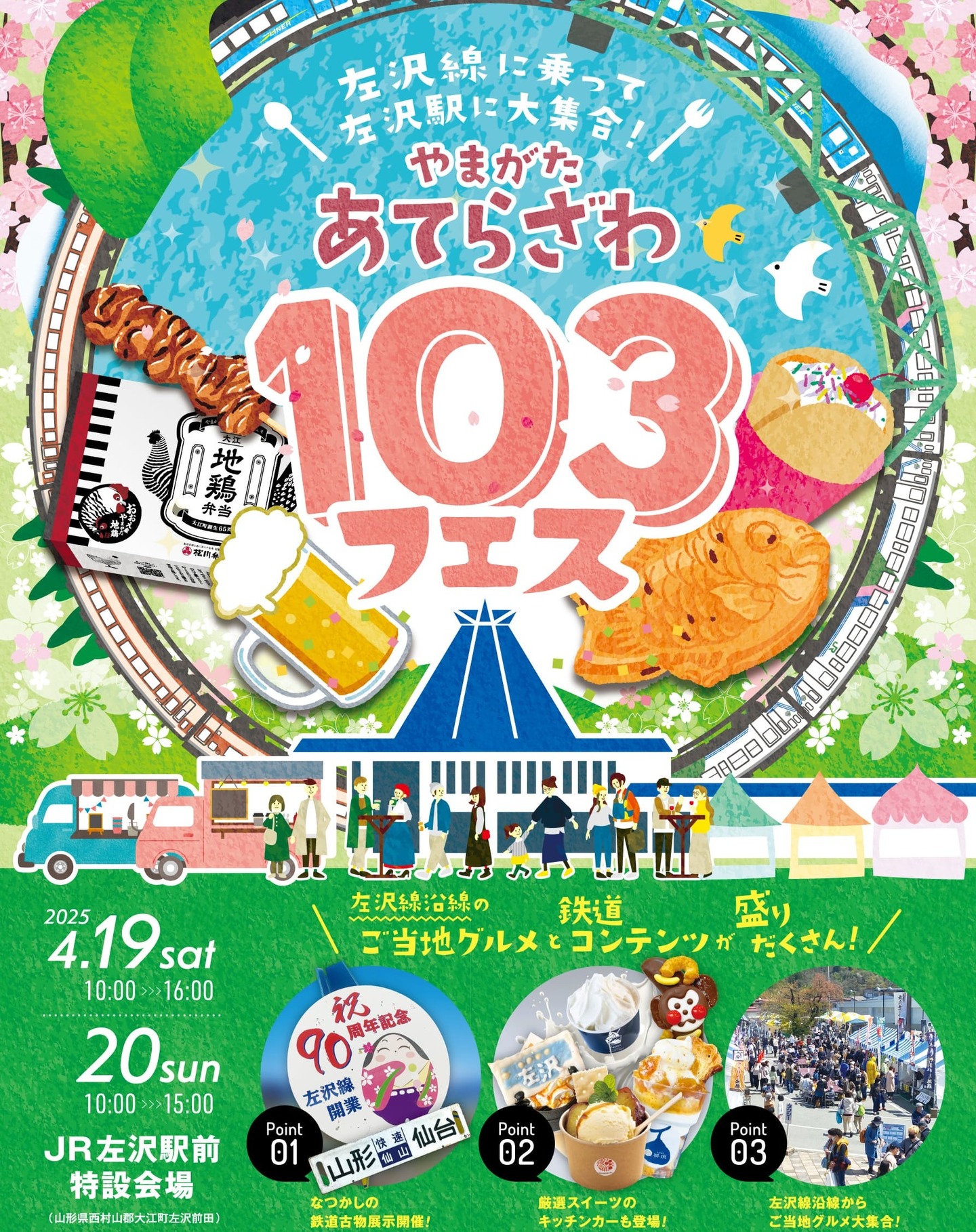 「やまがた あてらざわ103フェス」開催決定!! 4月19日(土)と20日(日)2日間 わたしたち「クラッカー」も出店します! 鉄道の魅力と、左沢線沿線グルメをたっぷり官能できる2日間! 左沢線沿線のグルメが勢ぞろいする「左沢線沿線マルシェ」や 県内のスイーツを楽しめるキッチンカーが登場! さらに「全国駅弁まつり」も同時開催ですよ! また、毎回大人気の「レールスター体験乗車」や 「こども駅長制服撮影会」左沢線にちなんだクイズ大会開催され、 鉄道ファンにも楽しめるコンテンツが満載です。 大江町の春を彩る特別な2日間! 皆様のご来場をお待ちしております! 日時:2025年4月19日(土)、 20日(日) 会場:JR左沢駅前広場及びその周辺 時間:19日:10:00-16:00、20日:10:00-15:00 #あてらざわ103フェス