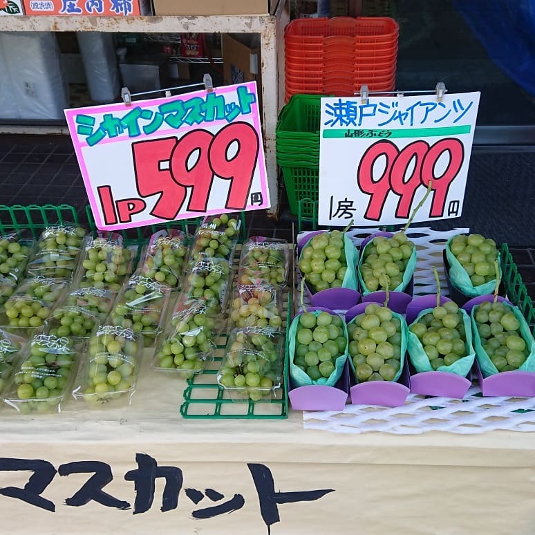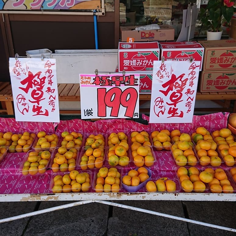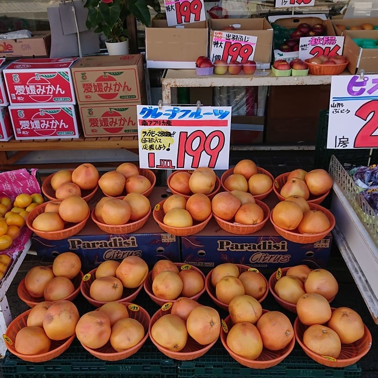 【めざせJ1️】 モンテディオバナナを食べて応援だ~️ J1目指して111円 【ラグビーで話題】 日本を破った「南アフリカ」 グレープフルーツを食べて応援だ~️ 大玉3個盛りして驚きの199円️ 【ぶどうまつり】 ピオーネ399円 シャインマスカット599円 瀬戸ジャイアンツ999円 【極早生みかん】 愛媛赤箱みかん1皿199円️