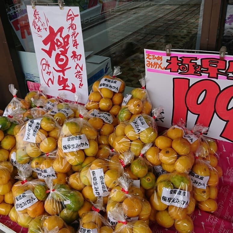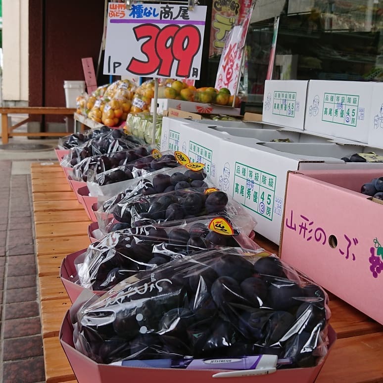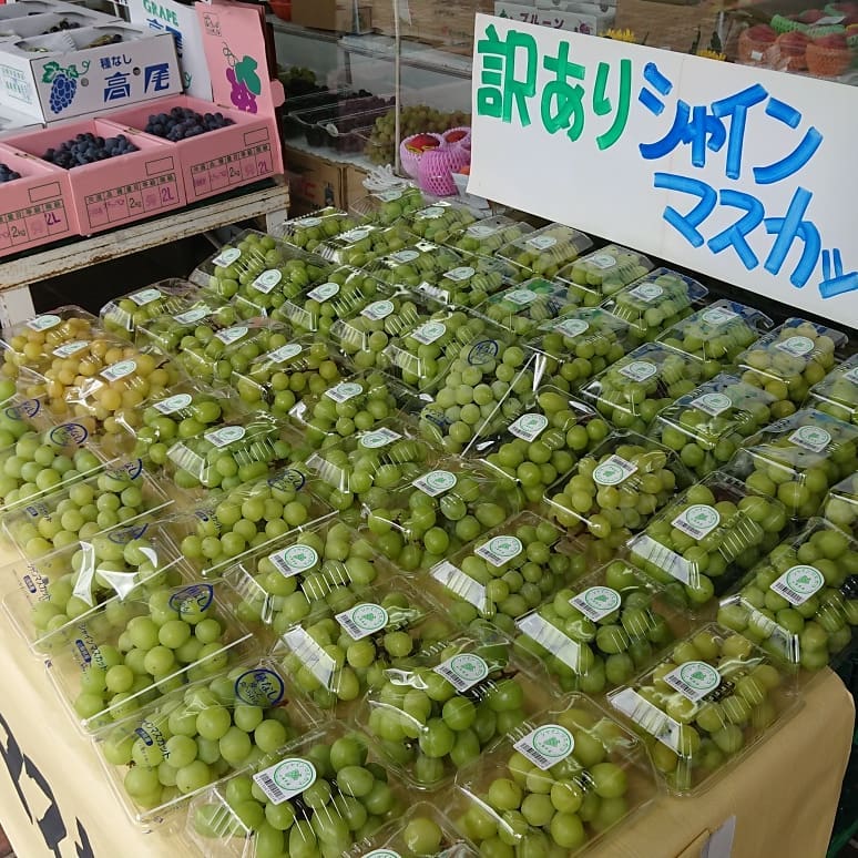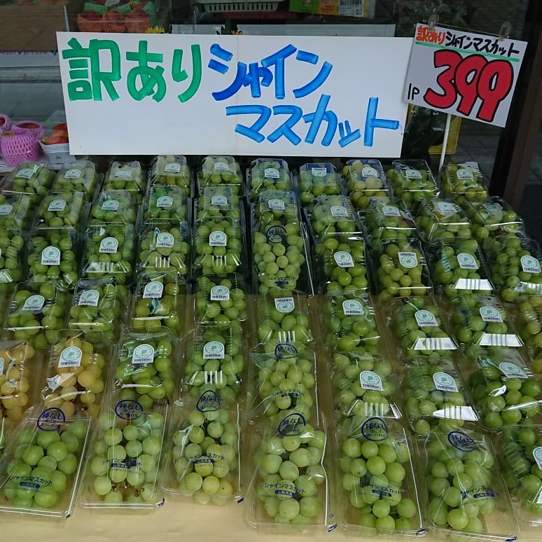 - 【シャインマスカットまつり~️】 訳あり(市場でおいて軸が茶色になった) 早い者勝ち 1p399円=消費税8%含んでのお値段です。 【種無し高尾】 これはおすすめです大房3ふさ入り 1箱999円️ 【リンゴ昂林】 酸味があっておいしい早生ふじ系りんごとにかくデカい 2個入り258円 【朝採りキャベツ】 朝採りキャベツは毎日入荷️ 【極早生みかん】 爽やかな酸味極早生みかん199円