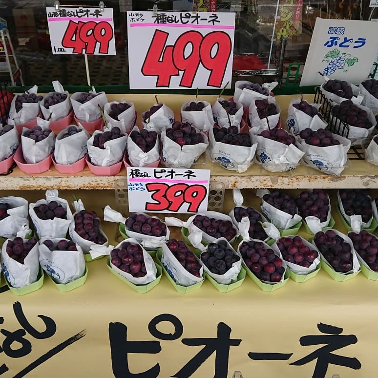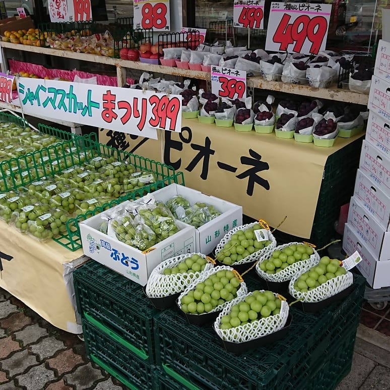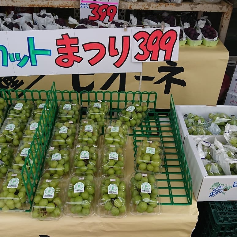 - 【シャインマスカット399円️~】 種無し皮ごと「シャインマスカット」 【種無しピオーネ399円~️】 ピオーネは基本種無し 【りんご秋映️】 真っ赤なりんご「あきばえ」 いっぷく君も待ってるよ~️