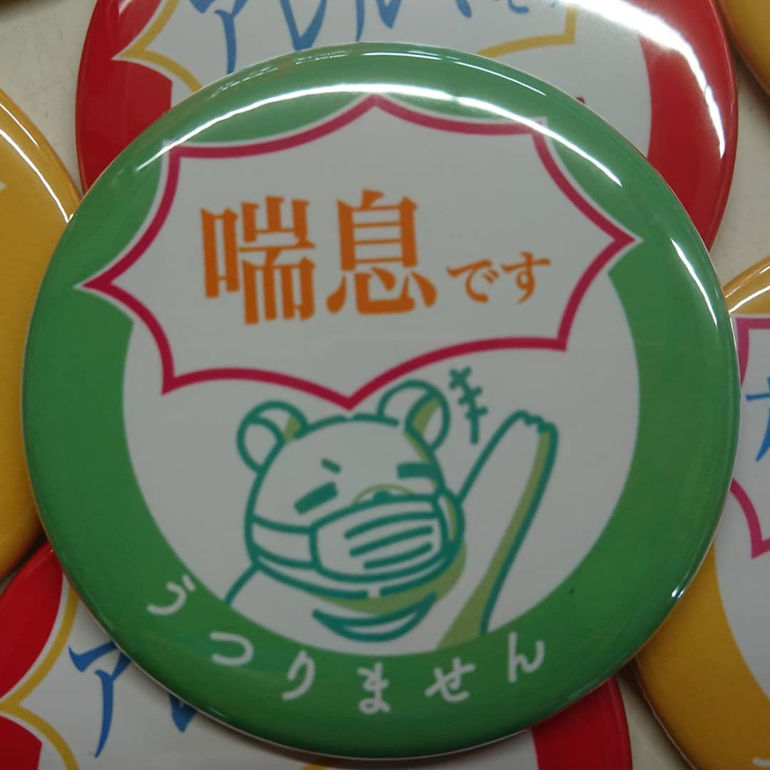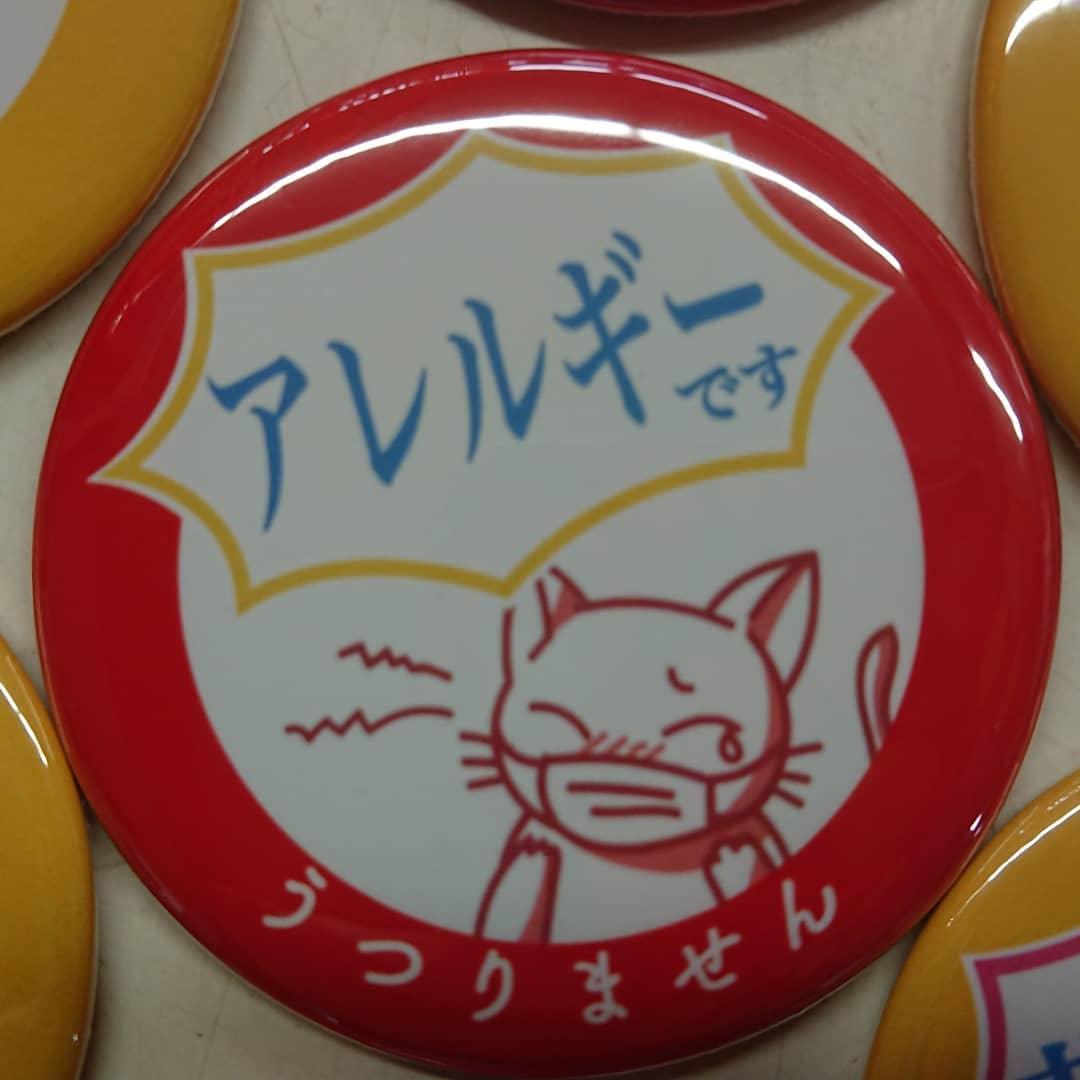 - 【プレゼント企画】 『うつりませんシリーズ』 クラッカーで発売開始! ≪缶バッジ1個220円≫ マスクをしてても態度はデッカく ①「花粉症です うつりません」 ②「アレルギーです うつりません」 ③「喘息です うつりません」 ④「予防です うつりません」 なんと「デコシャル&苺バナナチョコ」お買い上げのお客様に期間限定で差し上げます。(ご希望の方に) (3/15~3/31:水曜定休日) 通常は缶バッジ1個220円で販売中~️ 花粉症 缶バッジ 花粉症缶バッジ
