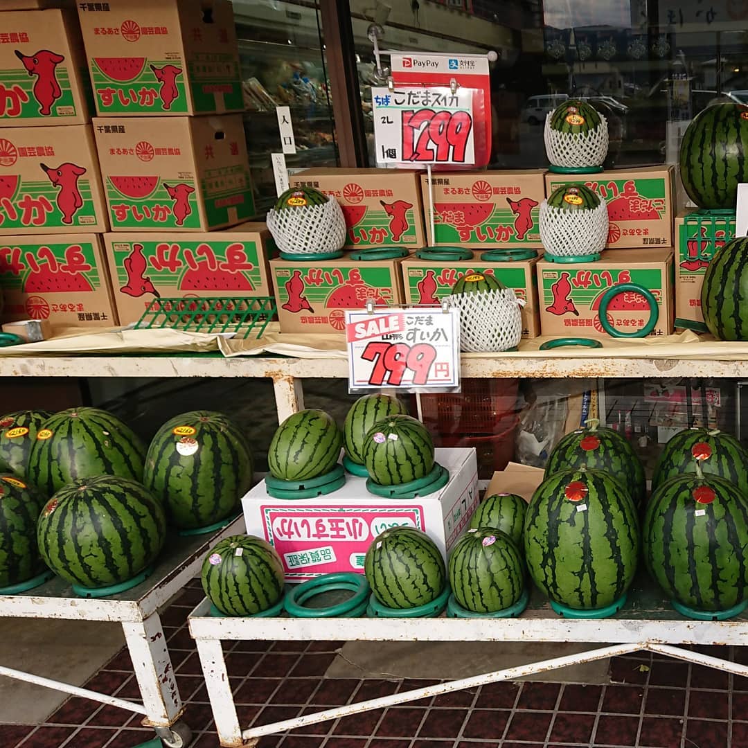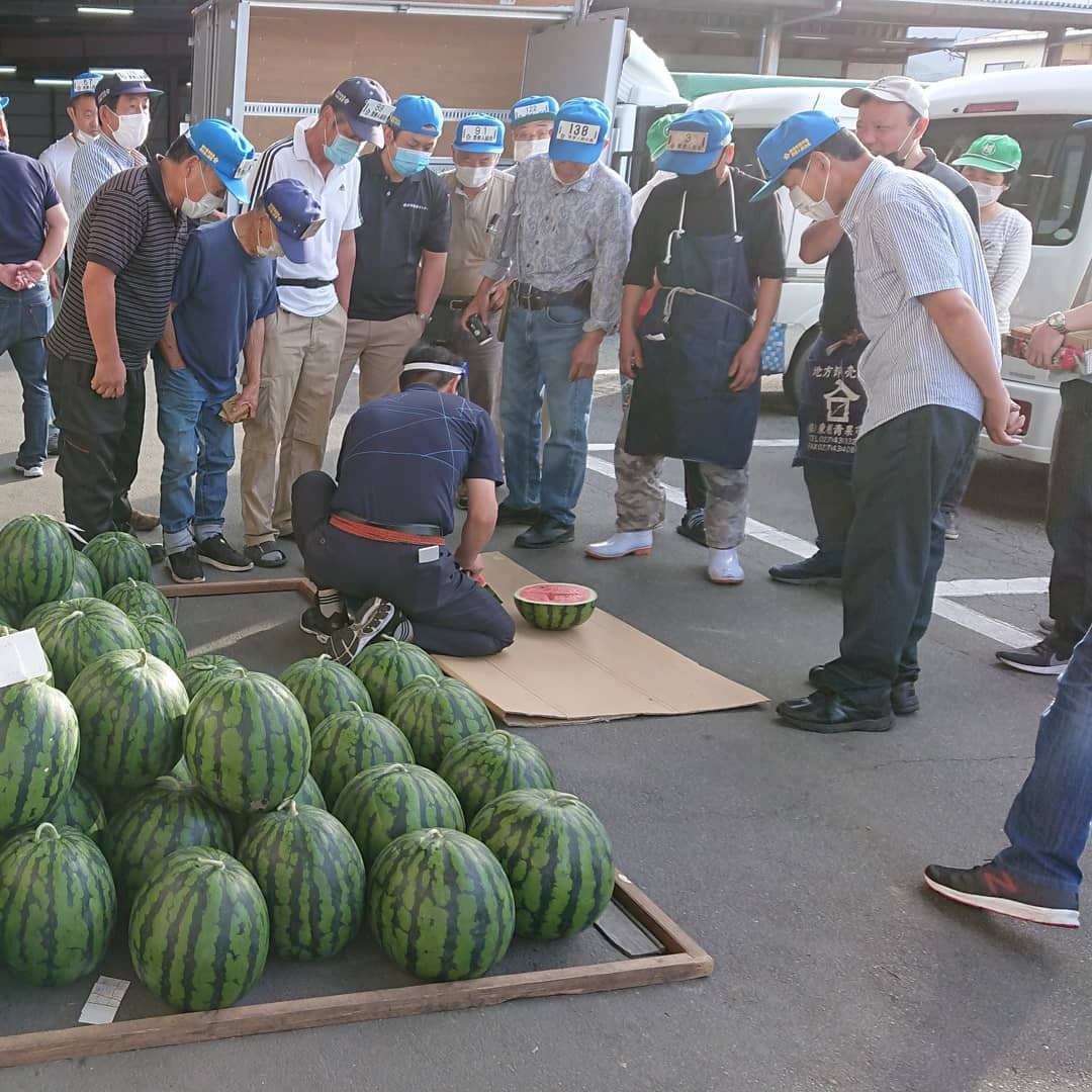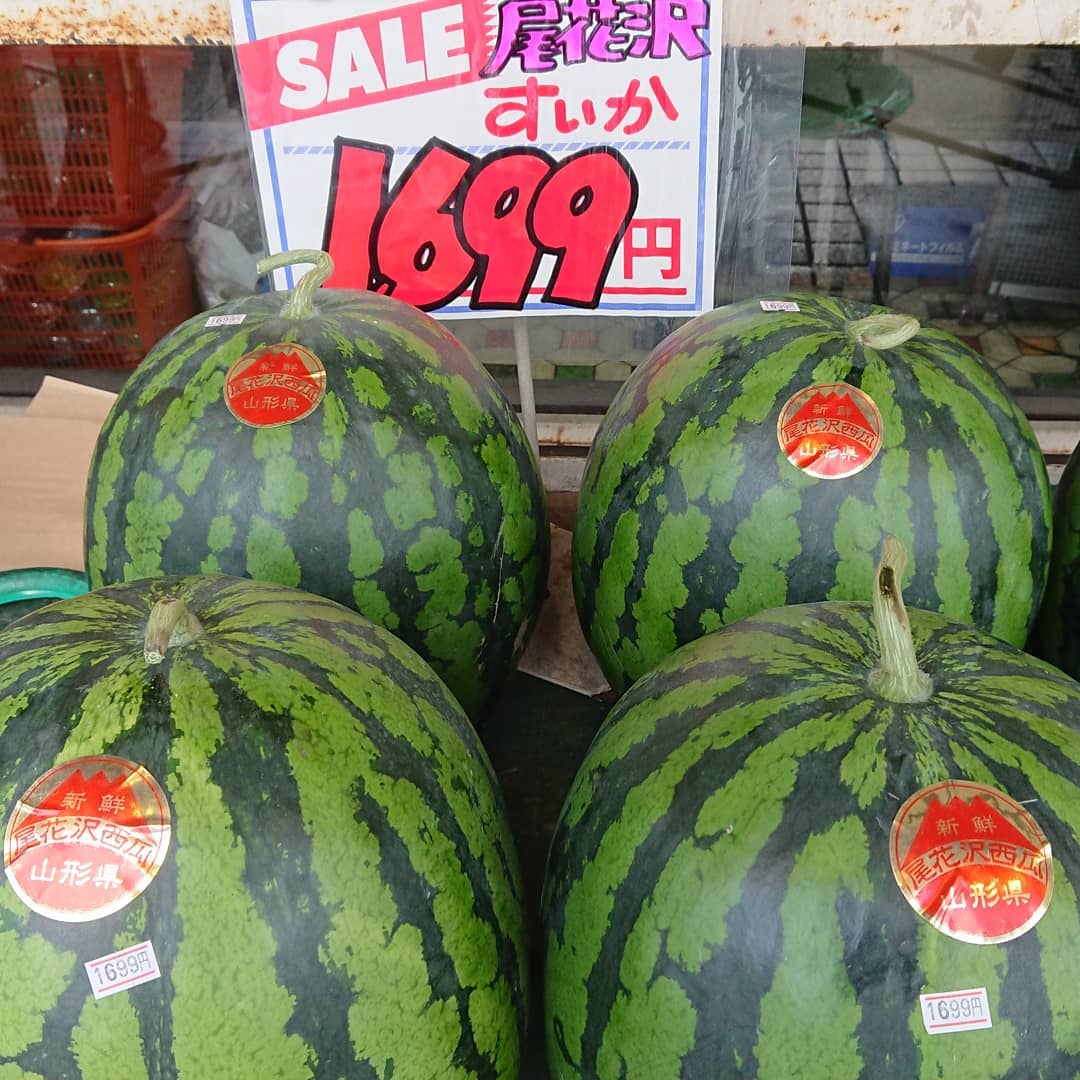 【初競り️️】 尾花沢バラスイカ市場に初登場️ まだ出荷の量は少ないですが いよいよ尾花沢スイカの幕開けです お店のスイカは千葉産→尾花沢産(山形)にシフトしていきます。