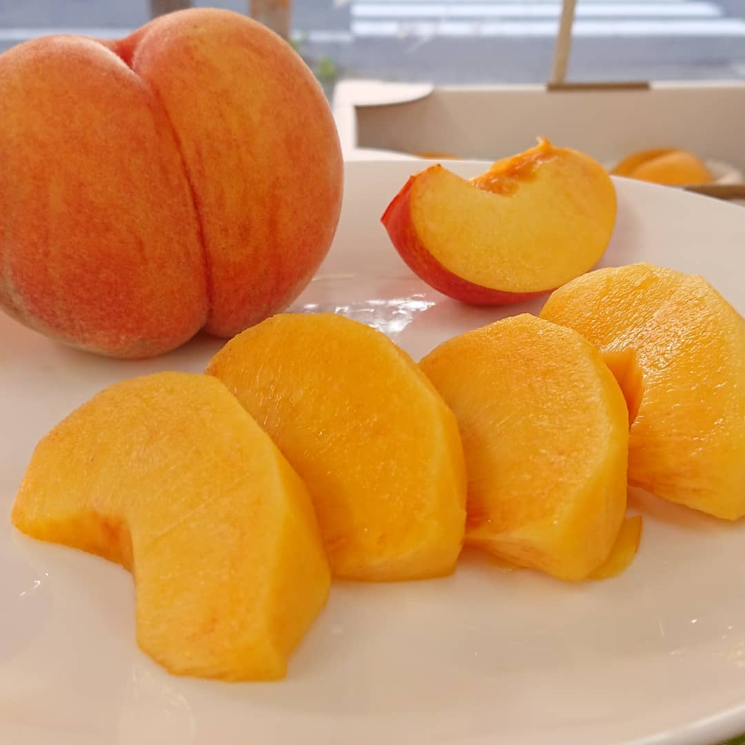 【山形の桃️】 この色はまるでマンゴーのよう️ クラッカーのイチオシ品種、『スイート光黄』 写真撮りと試食のつもりがあっという間に一人で平らげてしまった。スタッフのみんな、「すまんです️️」 【山形の桃️】 この色はまるでマンゴーのよう️ クラッカ View this post on Instagram A post shared by Shigemi Satou (@s.shigemi)