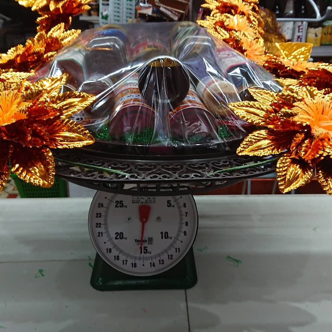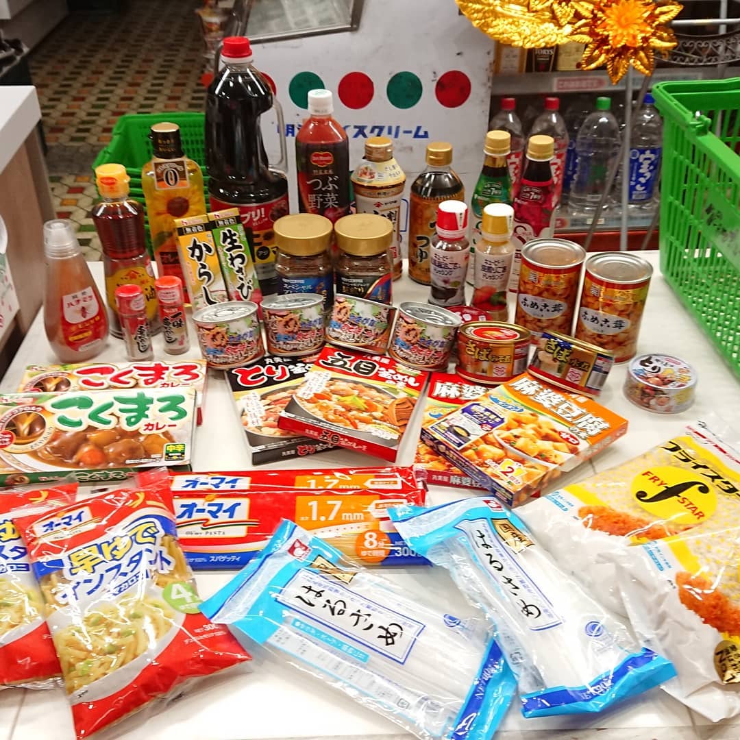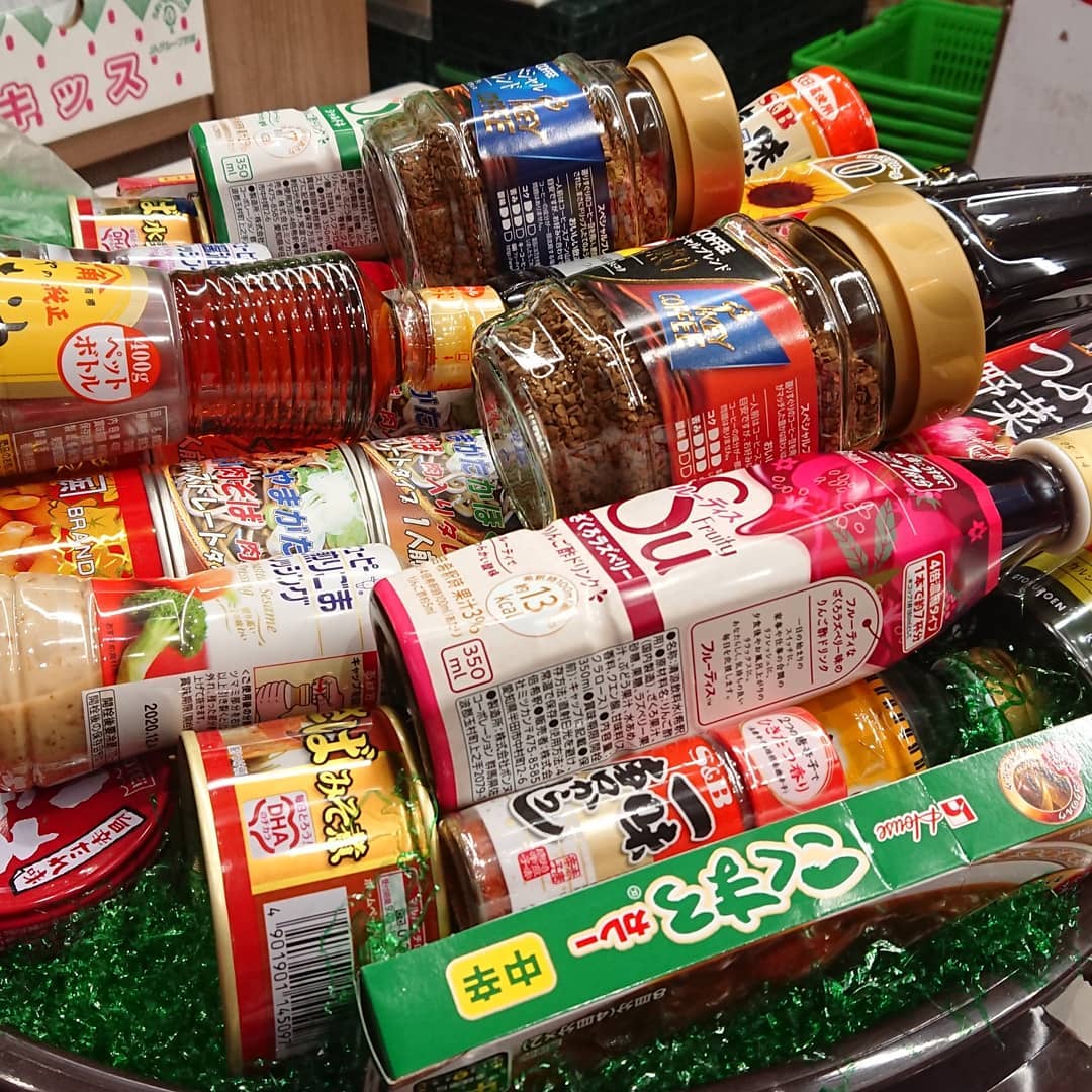 【盛り篭完成~️】 一般食品、調味料バージョン 業者さん泣かせの15kgオーバー️(初めて目方を計ってびっくりポン) なるべく同じものがダブらないように内容たっぷりの山盛り盛り篭️ 商品選定を担当しているクラッカーの女将はまだ入社3年生。(4年生) まだまだ消費者目線で商品をチョイス、というかほとんど自分が欲しいものを選んでいるようです️
