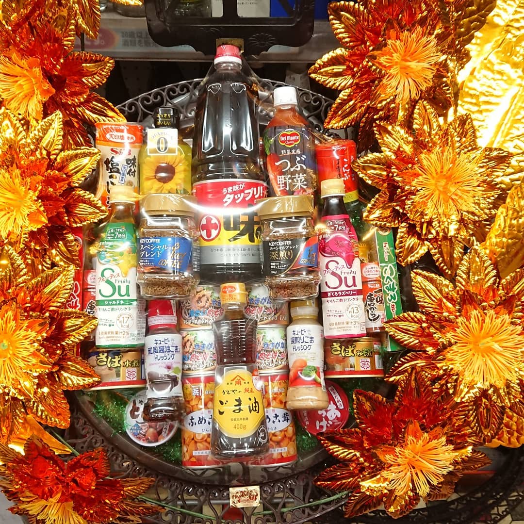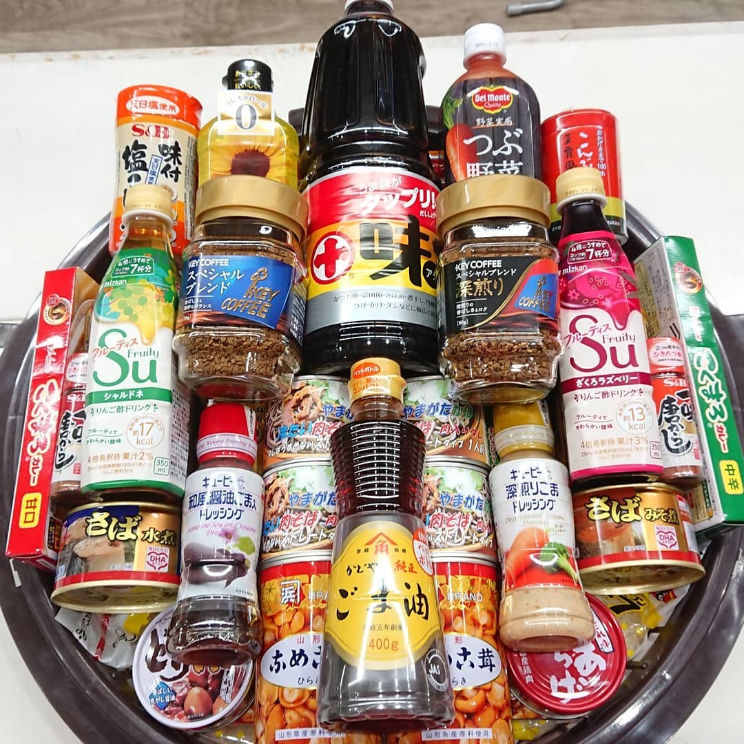 - 【盛り篭完成~️】 一般食品、調味料バージョン 業者さん泣かせの15kgオーバー️(初めて目方を計ってびっくりポン) なるべく同じものがダブらないように内容たっぷりの山盛り盛り篭️ 商品選定を担当しているクラッカーの女将はまだ入社3年生。(4年生) まだまだ消費者目線で商品をチョイス、というかほとんど自分が欲しいものを選んでいるようです️