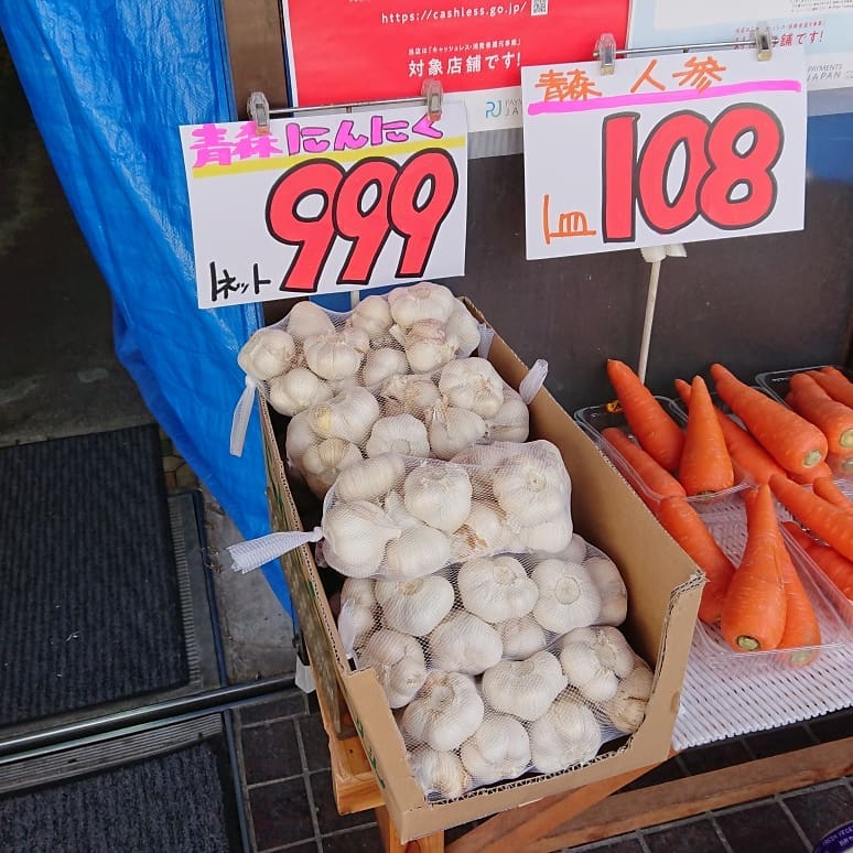 - 【超蜜入り】「こうとく」りんご ネットでは目んたま飛び出るお値段です。 黒ニンニク用の青森産にんにく驚きの1kg999円 部活動の差し入れにいかがでしょうか?バナナ1箱(13kg)ズバリ1,800円️ ほうれん草99円、白菜159円 その他いろいろお買い得 チョコバナナはアートだ。デコシャルはみんなの笑顔のために~