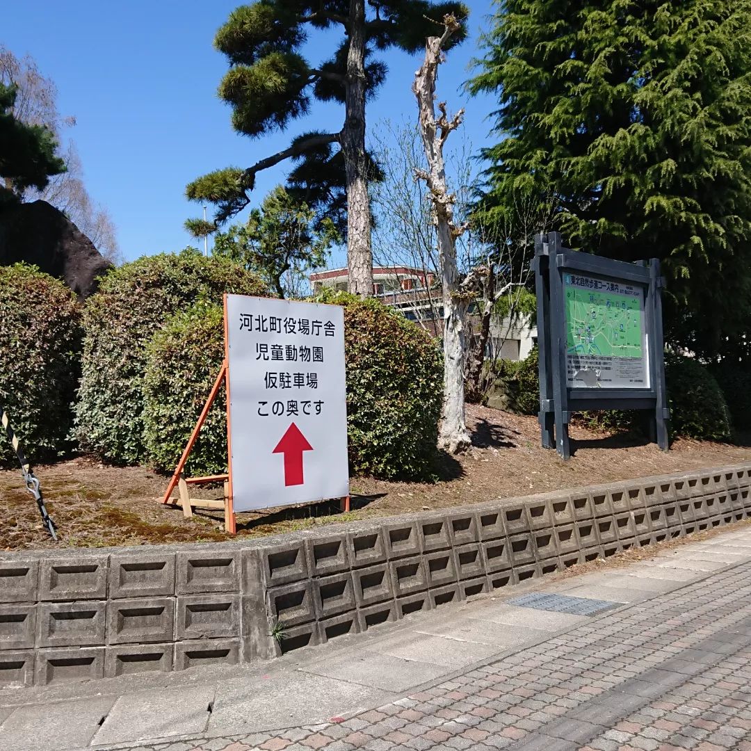 - 【️】駐車場 クラッカーの自動販売機側が駐車場となります。 4台分なのでいっぱいのときは、 動物園の臨時駐車場(動物園の八幡さま寄り)や 新庁舎北側️駐車場、どんがホールの️駐車場をオススメします お向かいの旧役場庁舎が解体のために立入禁止になっています。
