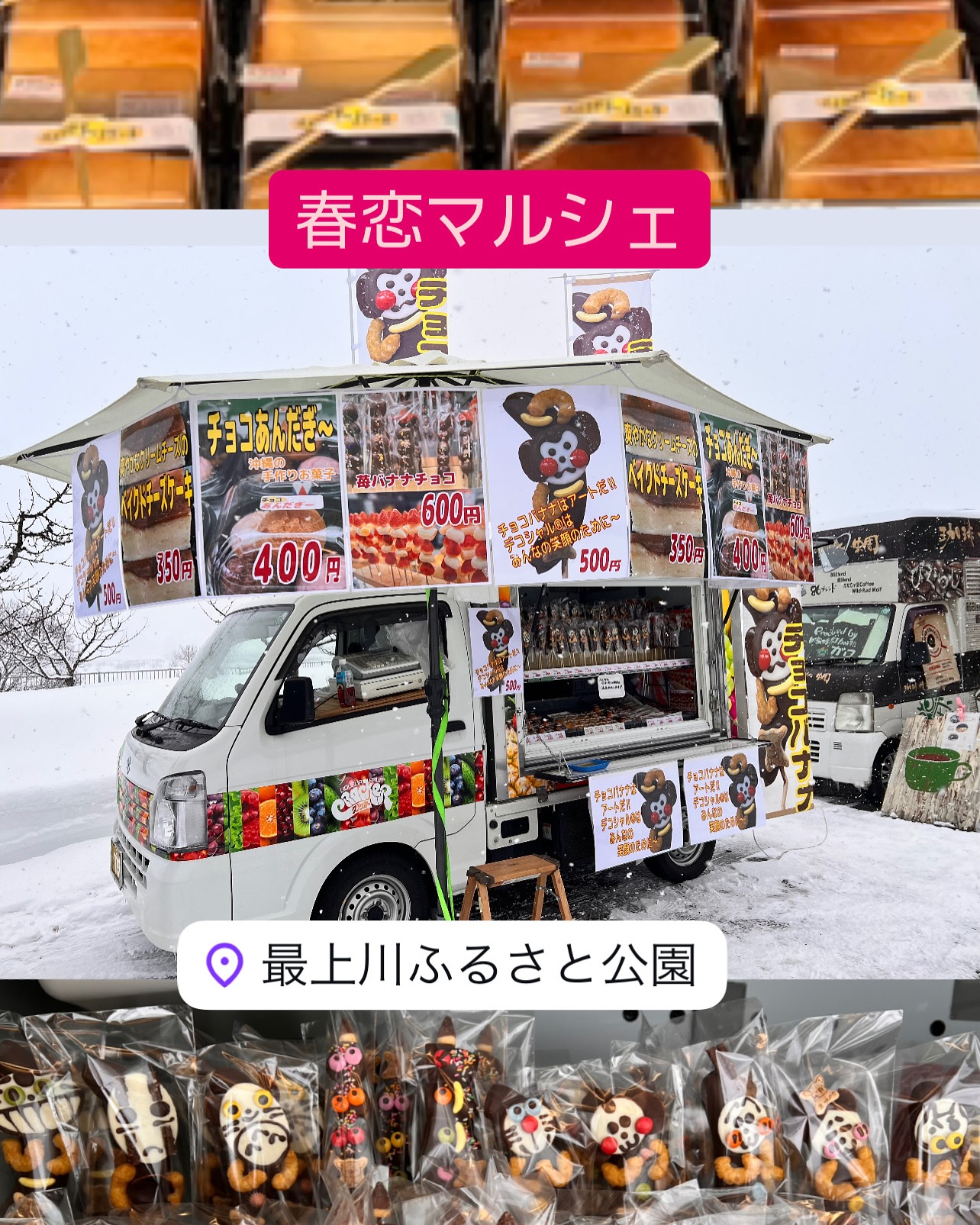 お店は臨時休業中ですが 移動販売車で春恋マルシェ2025に出店しています。場所は最上川ふるさと総合公園センターハウスになっています。寒河江スマートインターのある公園です。