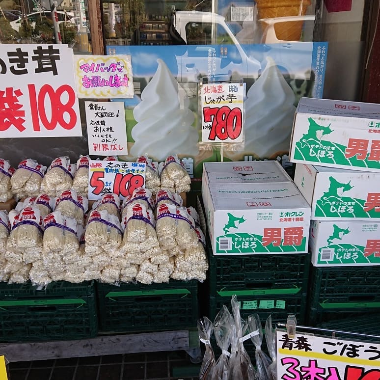 はいばらキッス399円️ えのき茸5袋108円はまだまだあります。まだまだ続く️