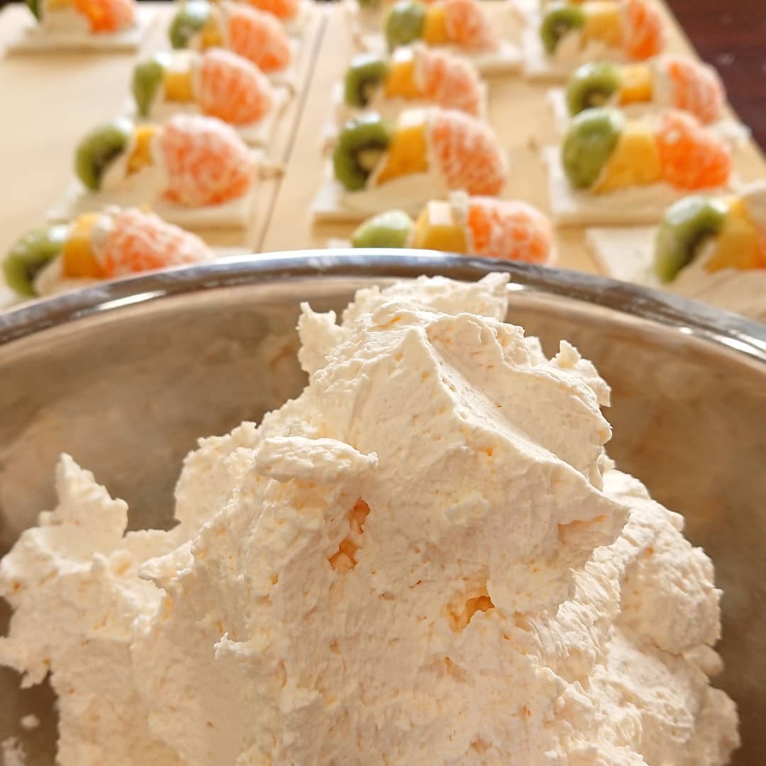#クラッカーのフルーツサンド 【待望のカスタード】 「こだわりたまごのカスタード」と「生クリーム」の融合~️ リクエストが多いカスタードクリームがデビューしました 組み合わせるフルーツは貴重なデコポン(熊本)、ハニーグロウパイン、ゼスプリキウイフルーツ?とのミックス
