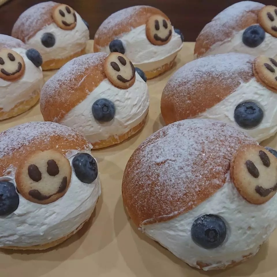 #クラッカーのマリトッツォ 【改良カスタードクリーム】 こだわりたまごのカスタードクリームを 夏向きに軽やかに変更しました。 今だけ限定で山形産のブルーベリーをトッピングしています。