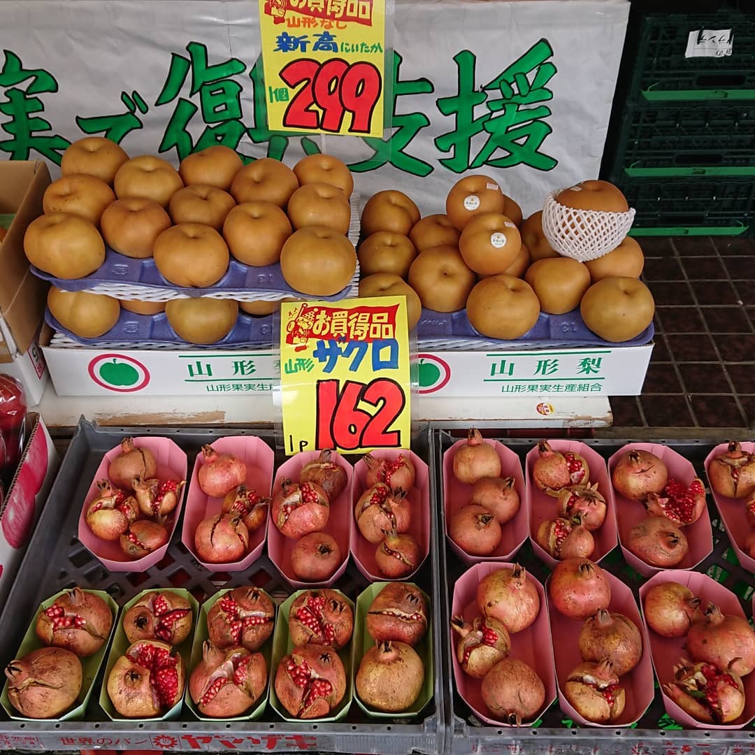 - ザ・ざくろ️ 珍しく「ざくろ」が市場に出ていました。さて、どうやって食べましょうか? キャベツ108円が、更にギヤをあげて 驚きの1個89円️しかも税込みですよ️