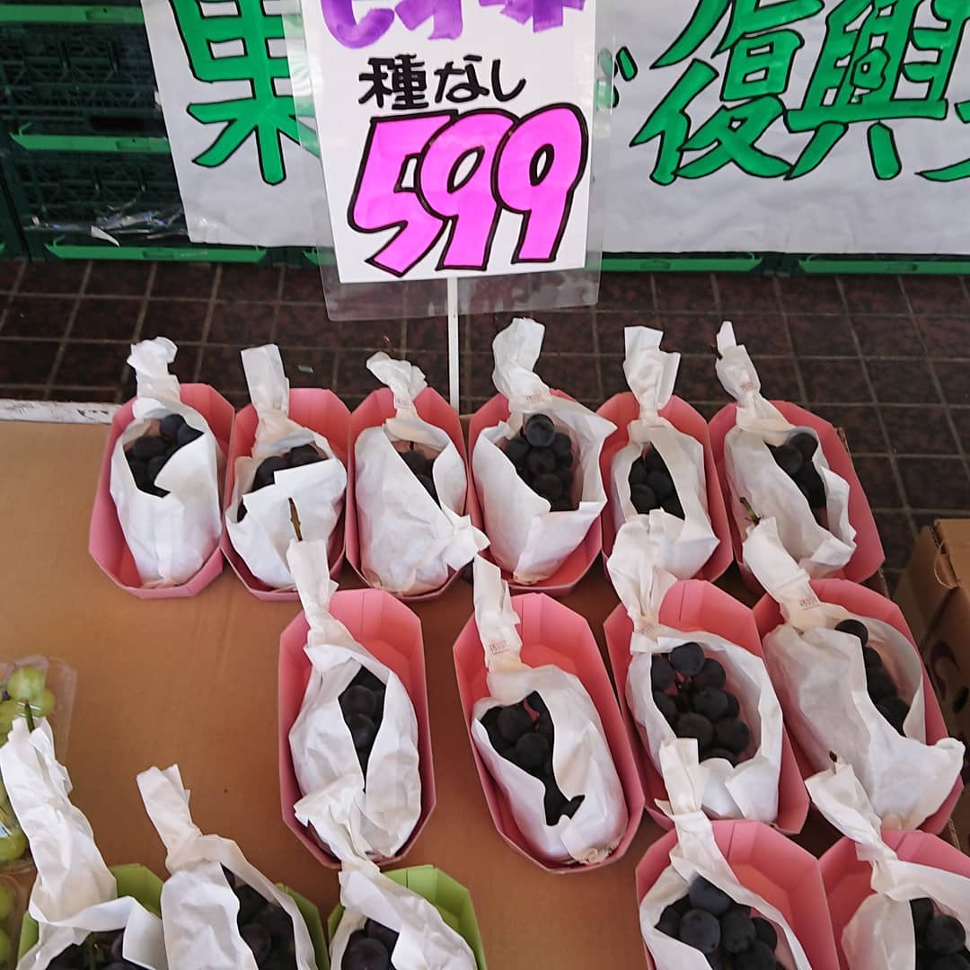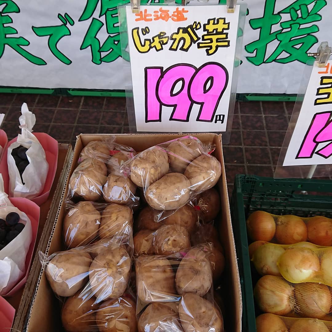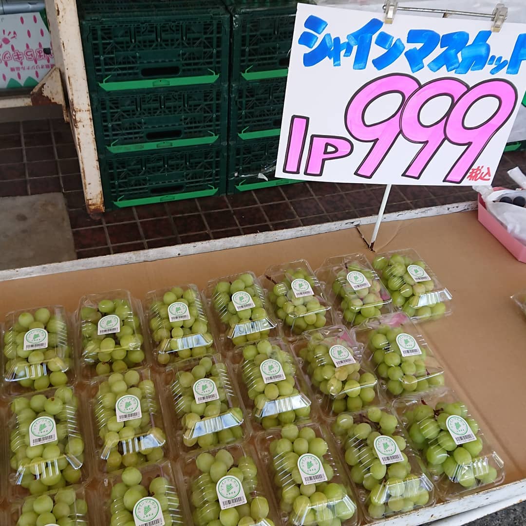 - シャインマスカットは パック入り1P999円️ 贈答用は大房2,199円️スタンドパック入り プルーンは3Lサイズの『パープルアイ』 玉ねぎ(L大)4個入り159円、じゃがいも(L)4個199円 チョコバナナはアートだ。デコシャル️はみんなの笑顔のために~️