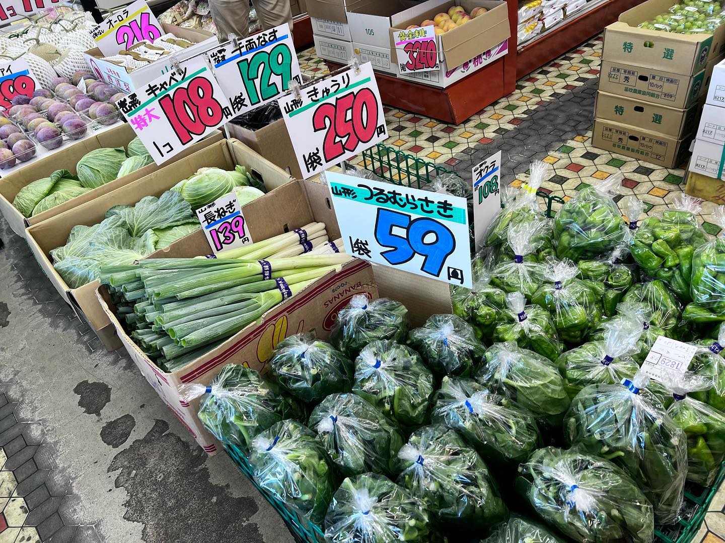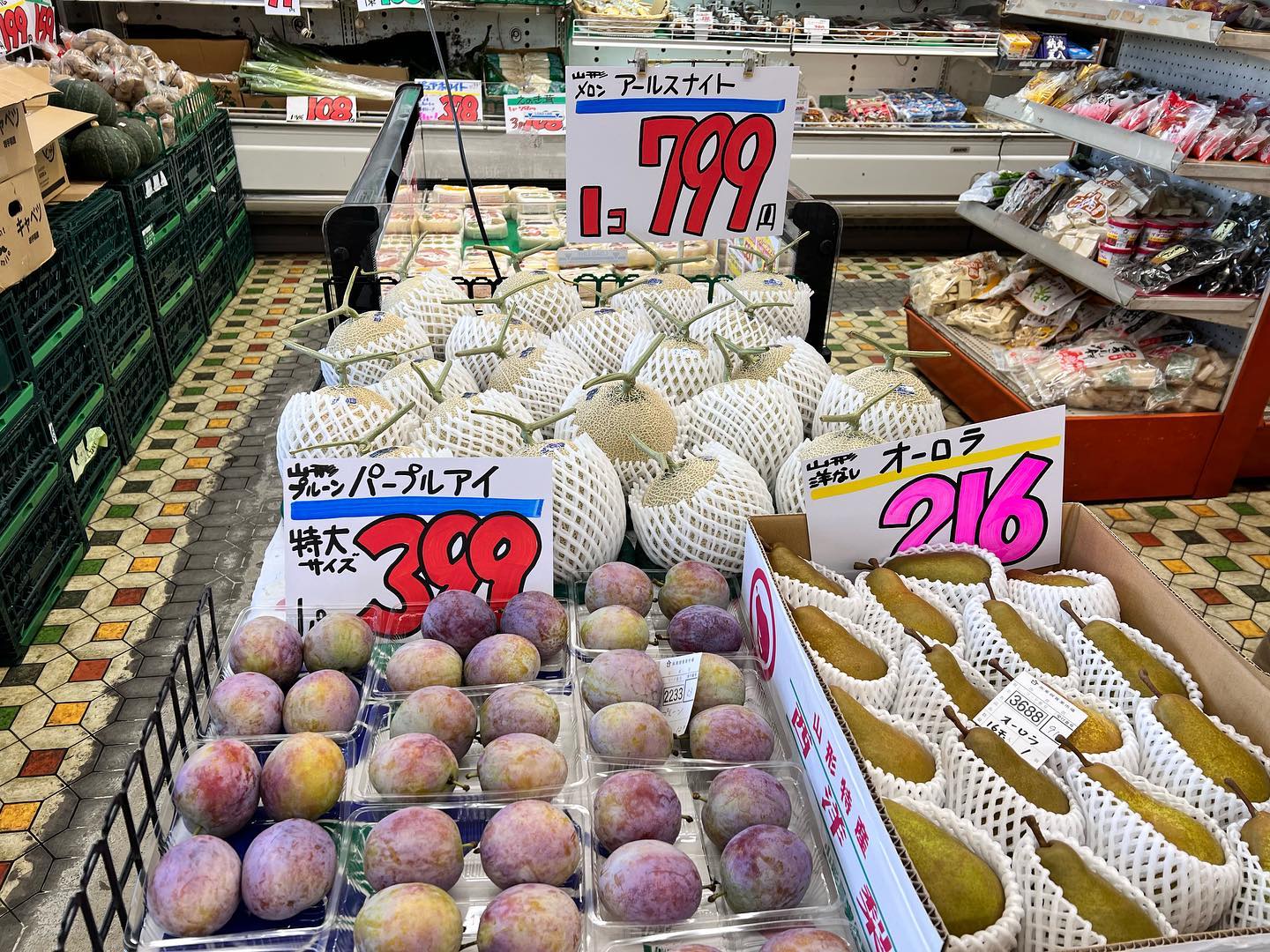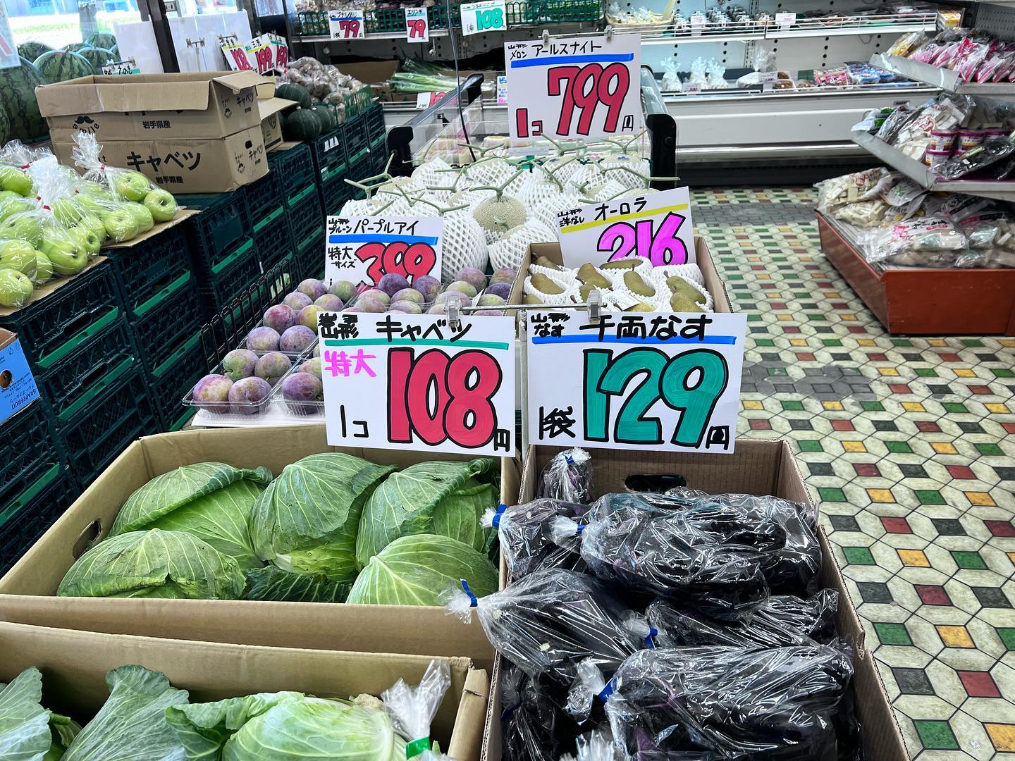 シャインマスカット 種無し皮ごと️ 1パック1,080円 山形りんご『スイートメロディー』1パック299円 お野菜の特にオススメは特大キャベツ1個108円