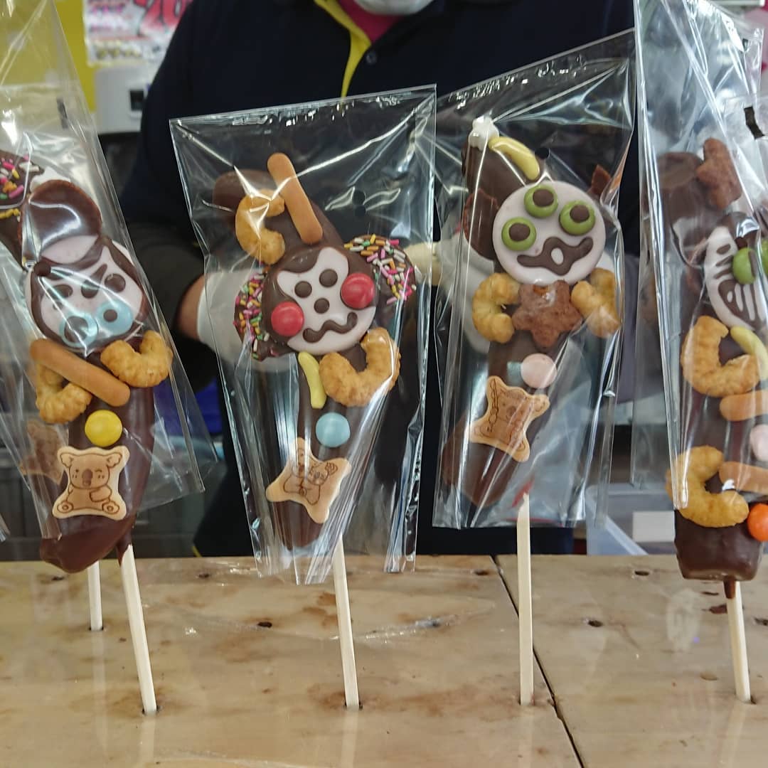 チョコバナナはアートだ。デコシャル️はみんなの笑顔のために~️ ふわふわカキ氷も好評です。