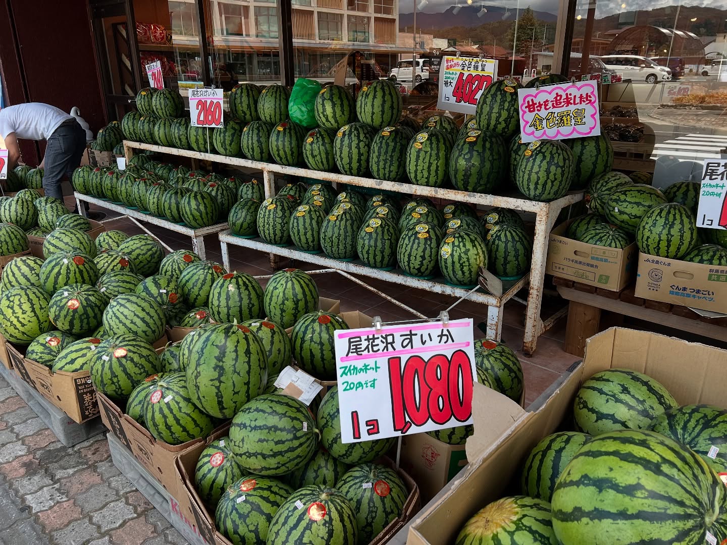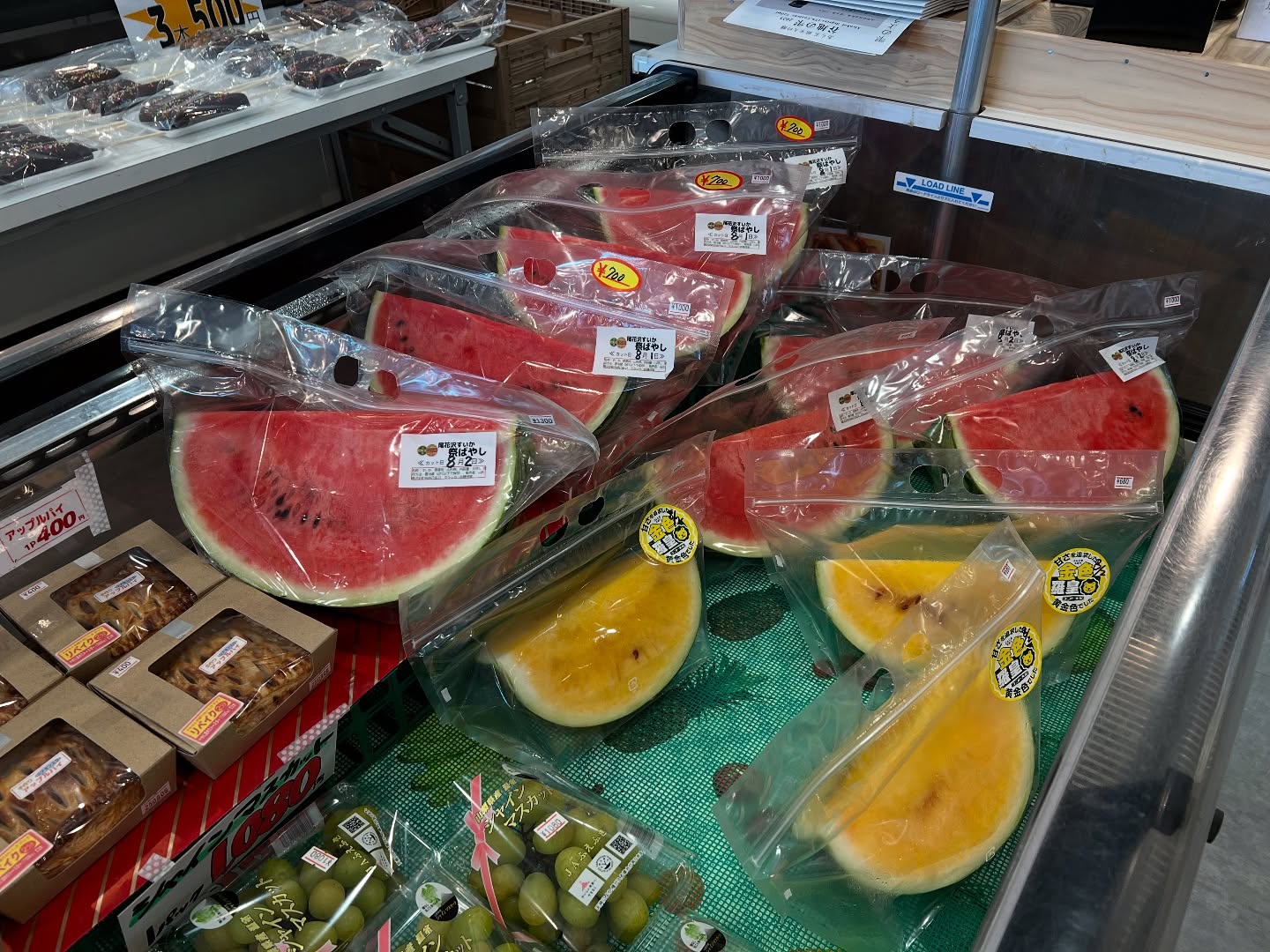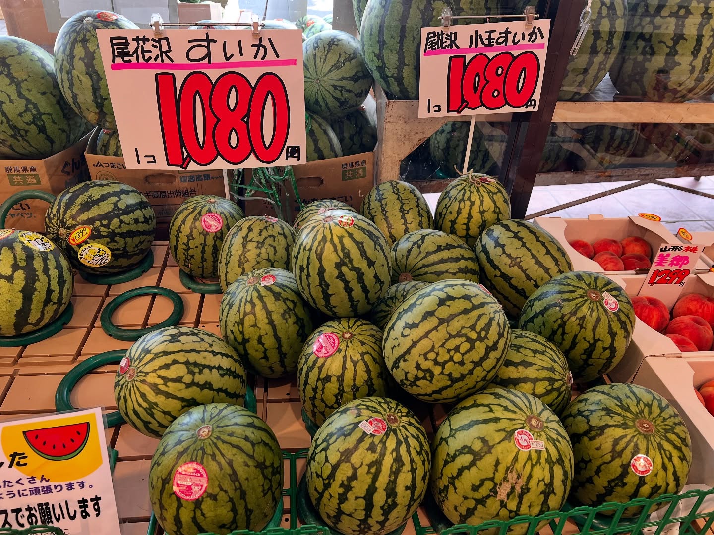 チョコバナナ3本500円 スイカ2個1,080円あります。 小玉すいか3個1,080円あります