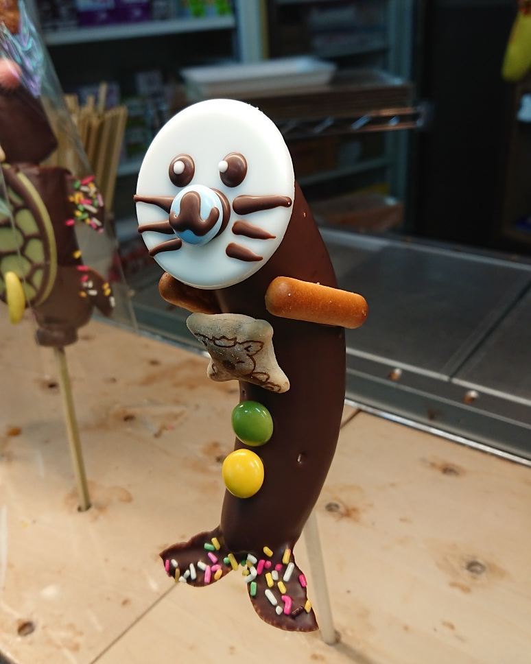 デコシャル️ 最上川にアザラシ現れる 『もがちゃん』命名クラッカー #チョコバナナはアートだ #デコシャルはみんなの笑顔のために #ちょこばなな #bananas #chocolatebananas #チョコバナナ #河北町 #デコシャルチョコバナナ #山形県 #山形県産 #マーブルチョコレート #マーブルチョコ #クラッカー #デコシャル #delicious