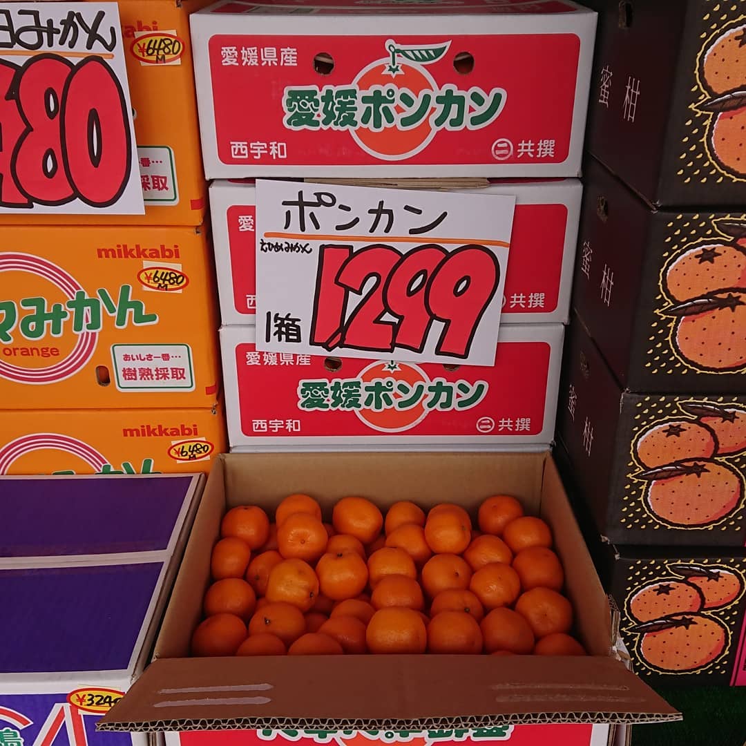 三ケ日みかん1,299円️ ハウスデコポン(化粧)2,499円️ ポンカン1,299円️ バナナの箱売りも健在です。