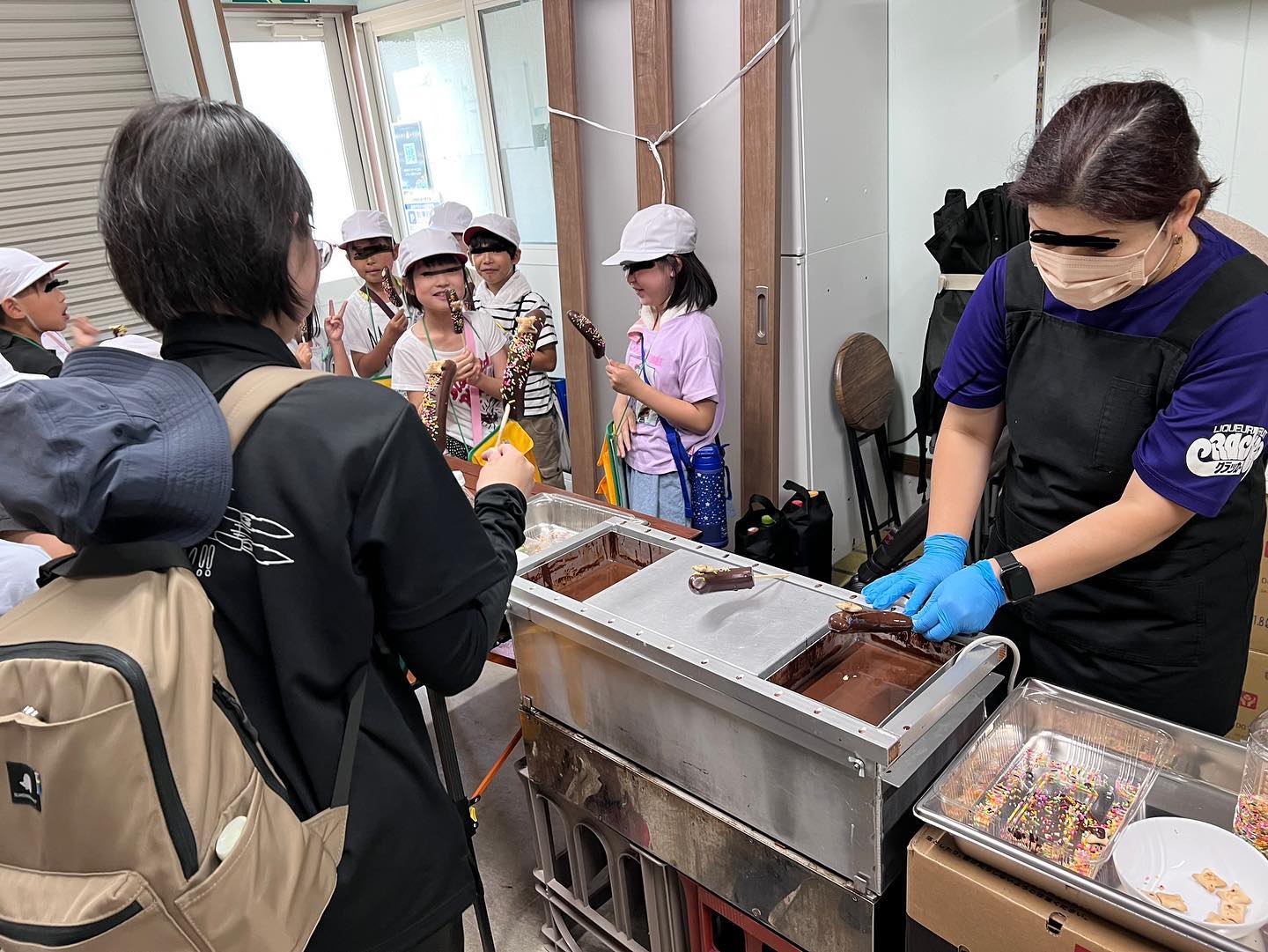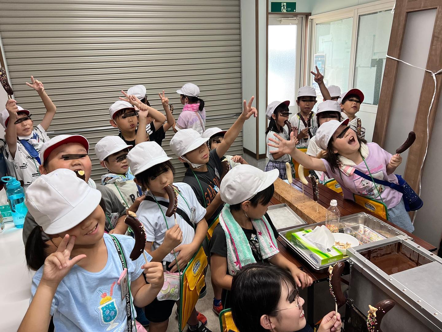 - 地元の谷地中部小学校2年3組のみなさんが、社会科見学でクラッカーに来てくれました。野菜や果物の質問のほかに、チョコバナナの機械はあるのですか?どうやって作っているのですか?という質問に答えて、実際にチョコバナナ作りを体験してもらいました。サプライズにみんな大喜び〜️️️でした。 みんな今度は家族と一緒に買い物にきてね〜