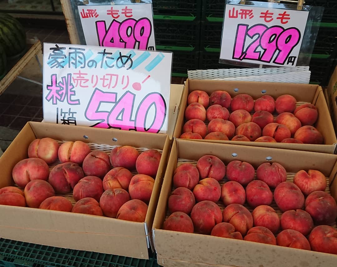 売り切れました️ ≪売り切り️≫ 豪雨のためお店はひまひま~️ 桃は残り4箱ですが、明日は定休日なのでなんとか売り切りたい️ 1箱540円なら手が出るのでは️ 営業時間は午後7:00です。ちなみに7/28(火)です。(後日これを見て来ないように。)