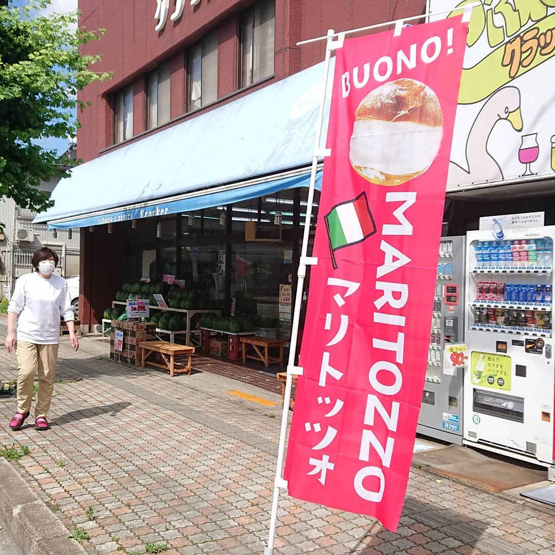 尾花沢すいか 今朝の競売で200個超える個数をゲットォ~️ シーズンインに相応しく、連日気温30度超え ️スイカに追い風~ 店頭にはスイカをはじめ、フルーツサンド、マリトッツォ、かき氷、駐車場のぼり旗がゾロっと出ました。