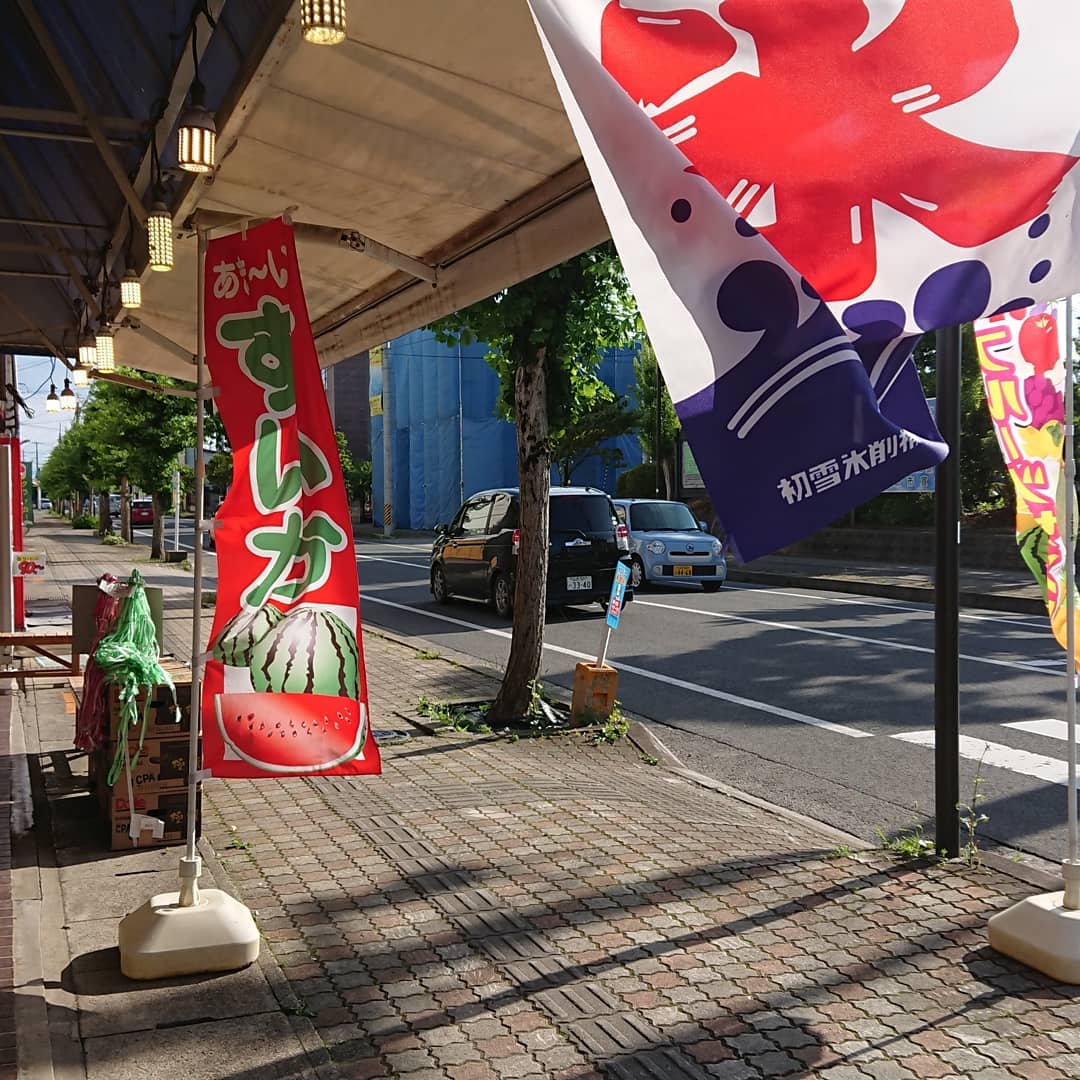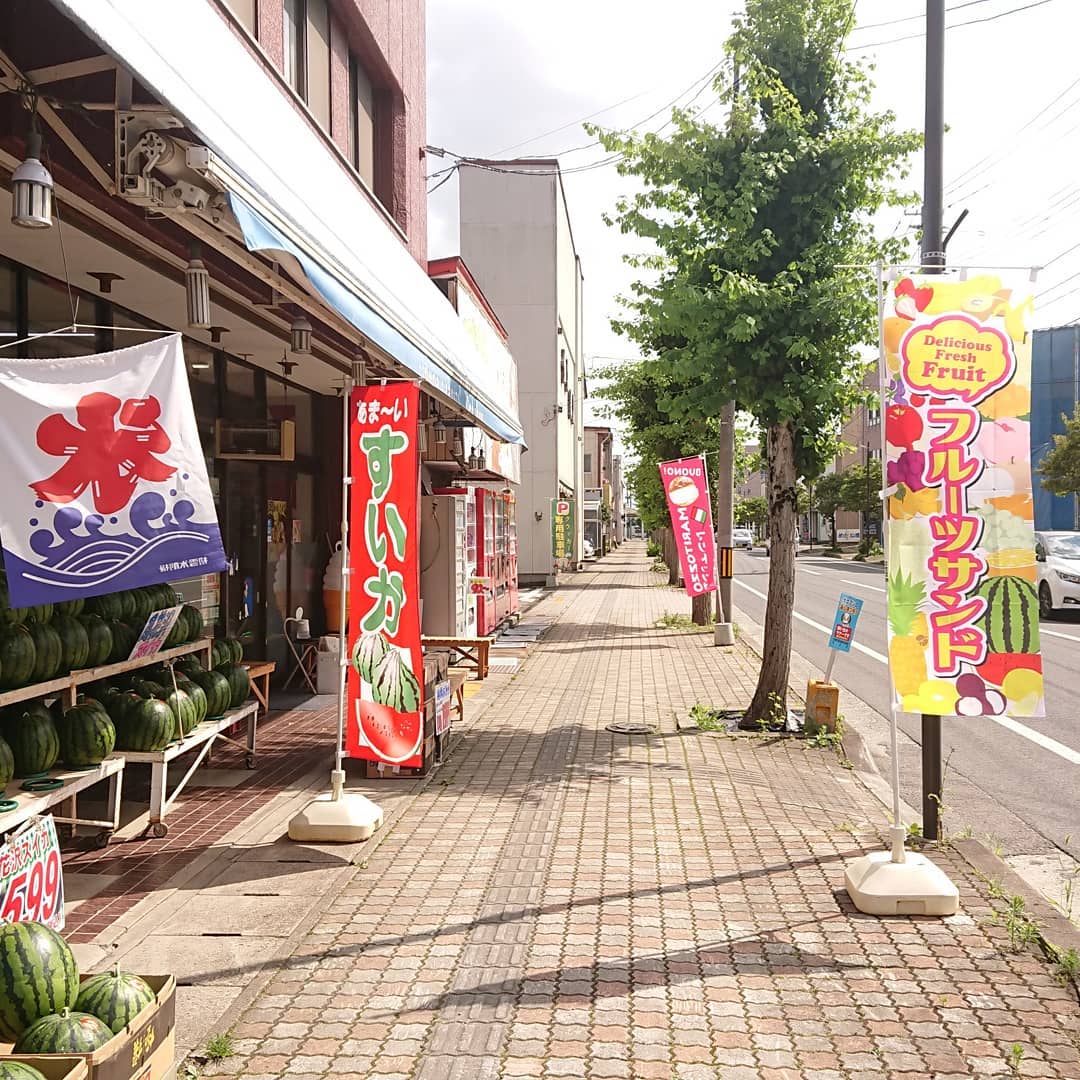 - 尾花沢すいか 今朝の競売で200個超える個数をゲットォ~️ シーズンインに相応しく、連日気温30度超え ️スイカに追い風~ 店頭にはスイカをはじめ、フルーツサンド、マリトッツォ、かき氷、駐車場のぼり旗がゾロっと出ました。