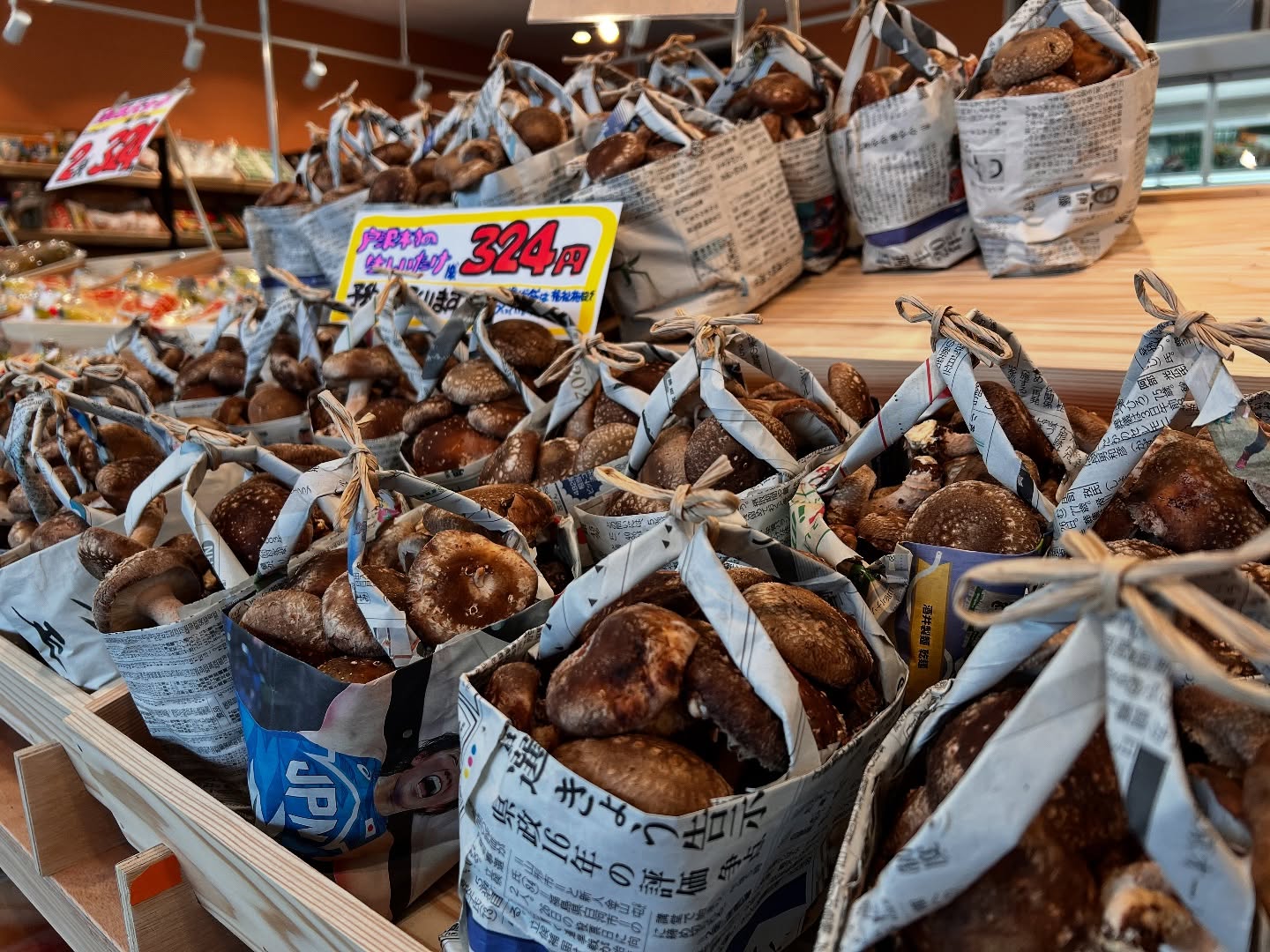 - 戸沢村から採りたて生椎茸が届きました。ボリューミーな手づくり手提げに入って、なんと324円