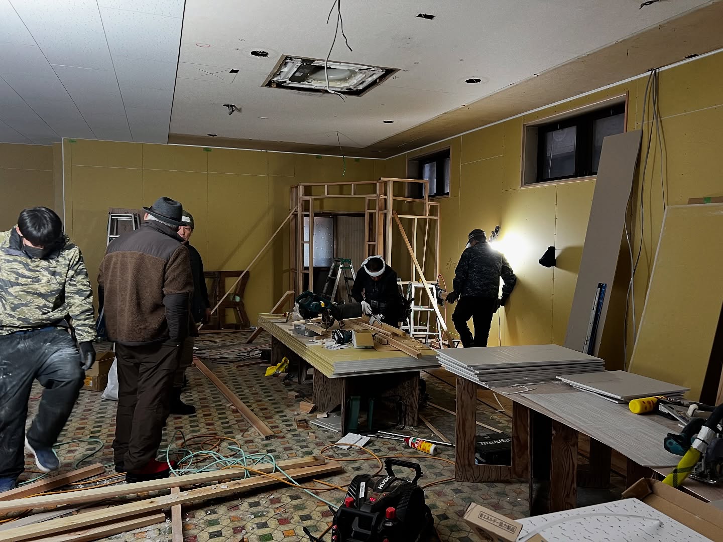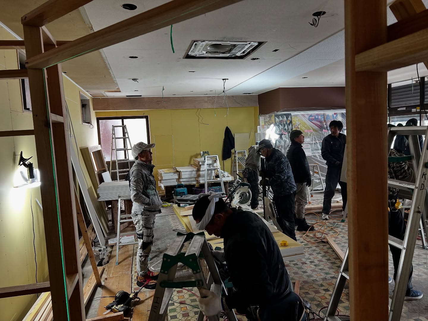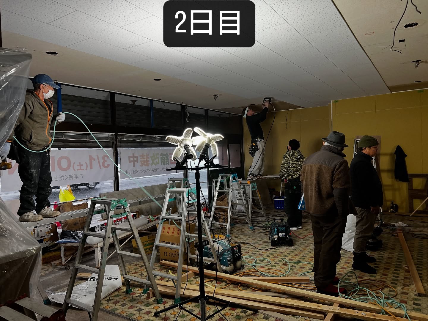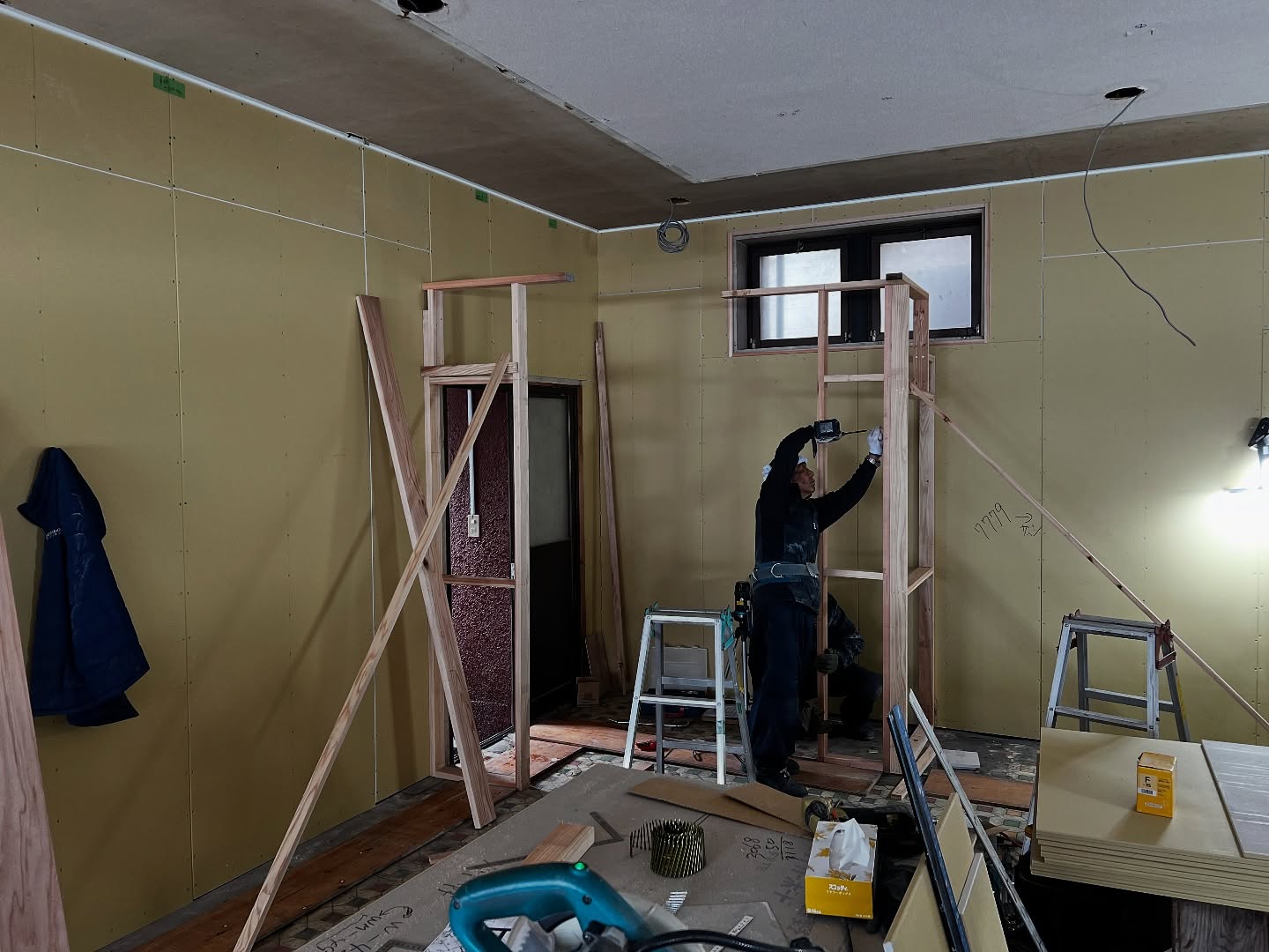 - 改装2日目 天井張りまできました。