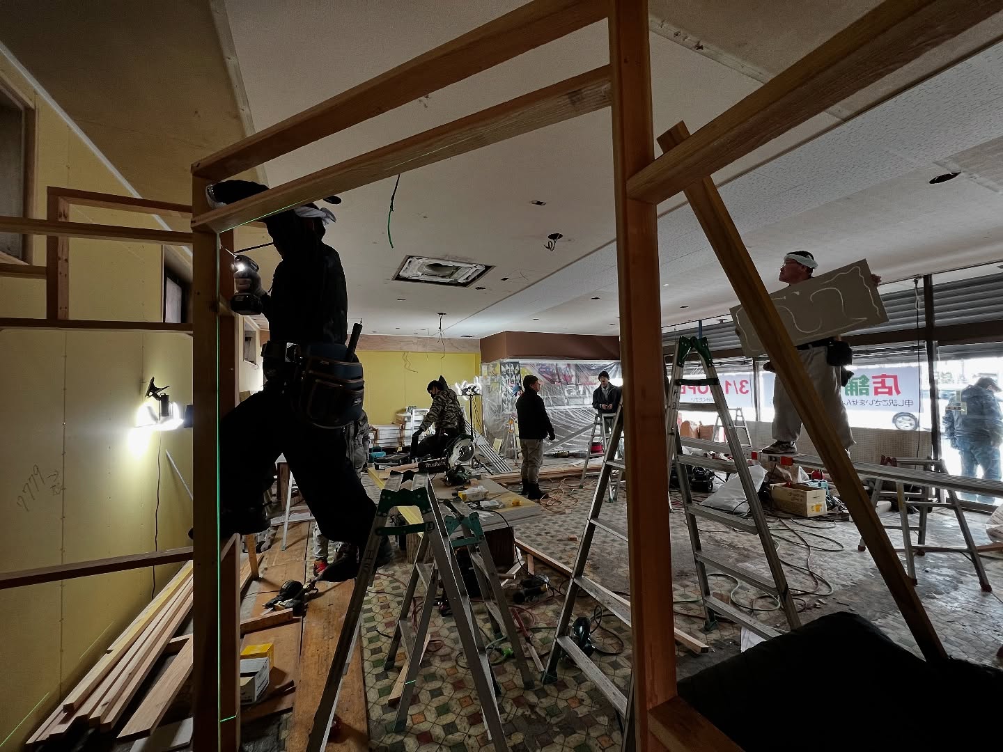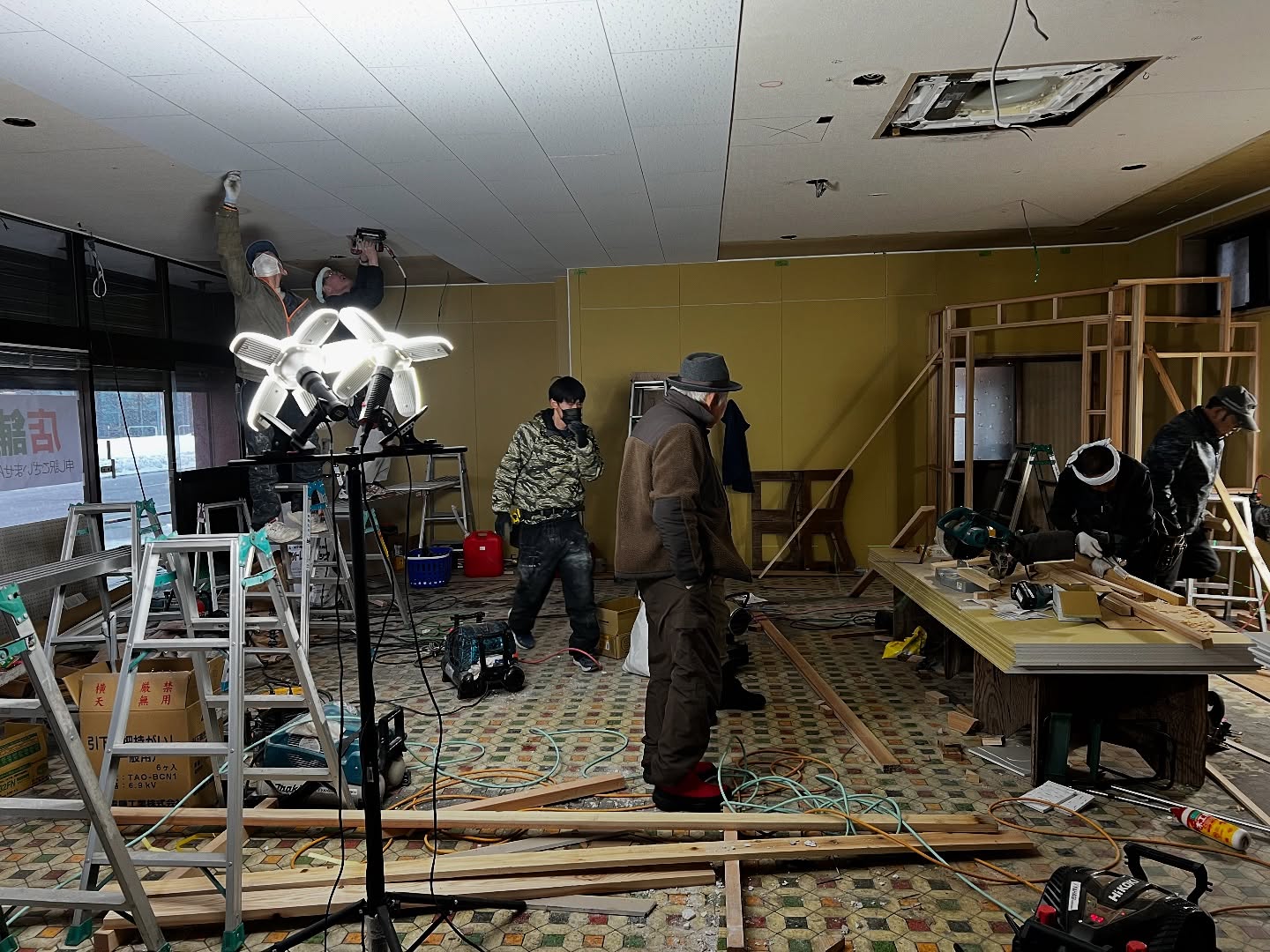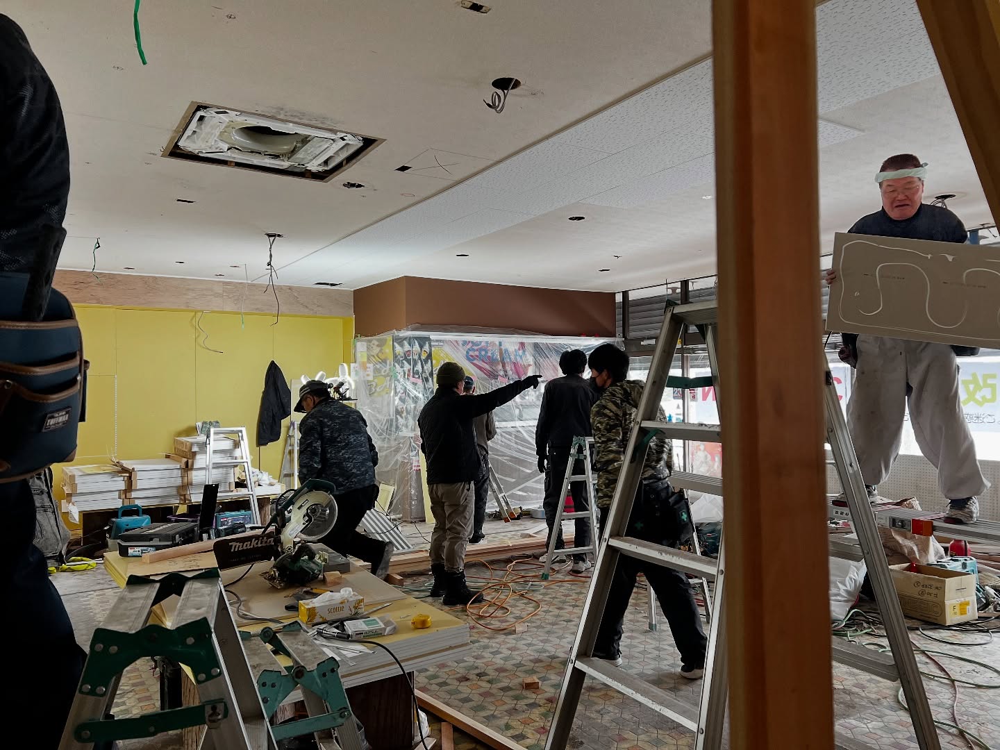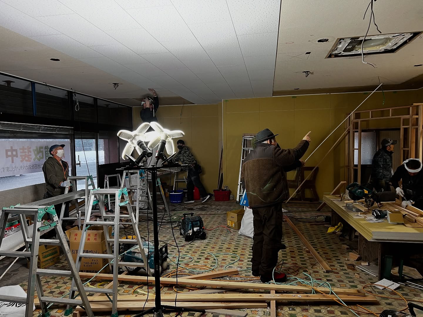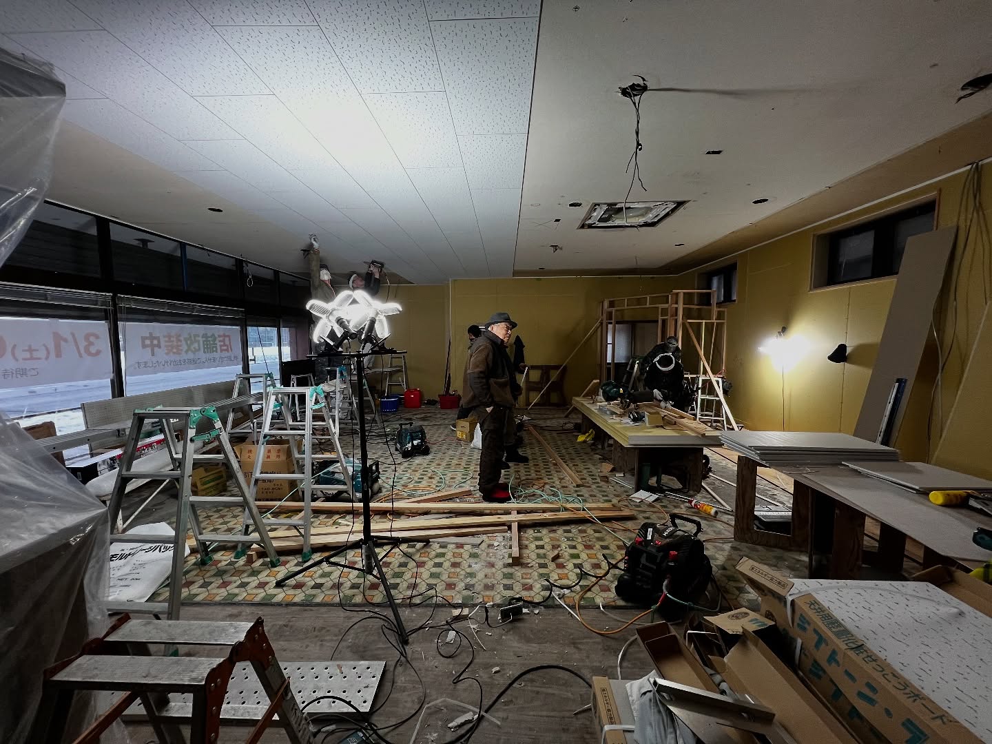 - 改装2日目 天井張りまできました。