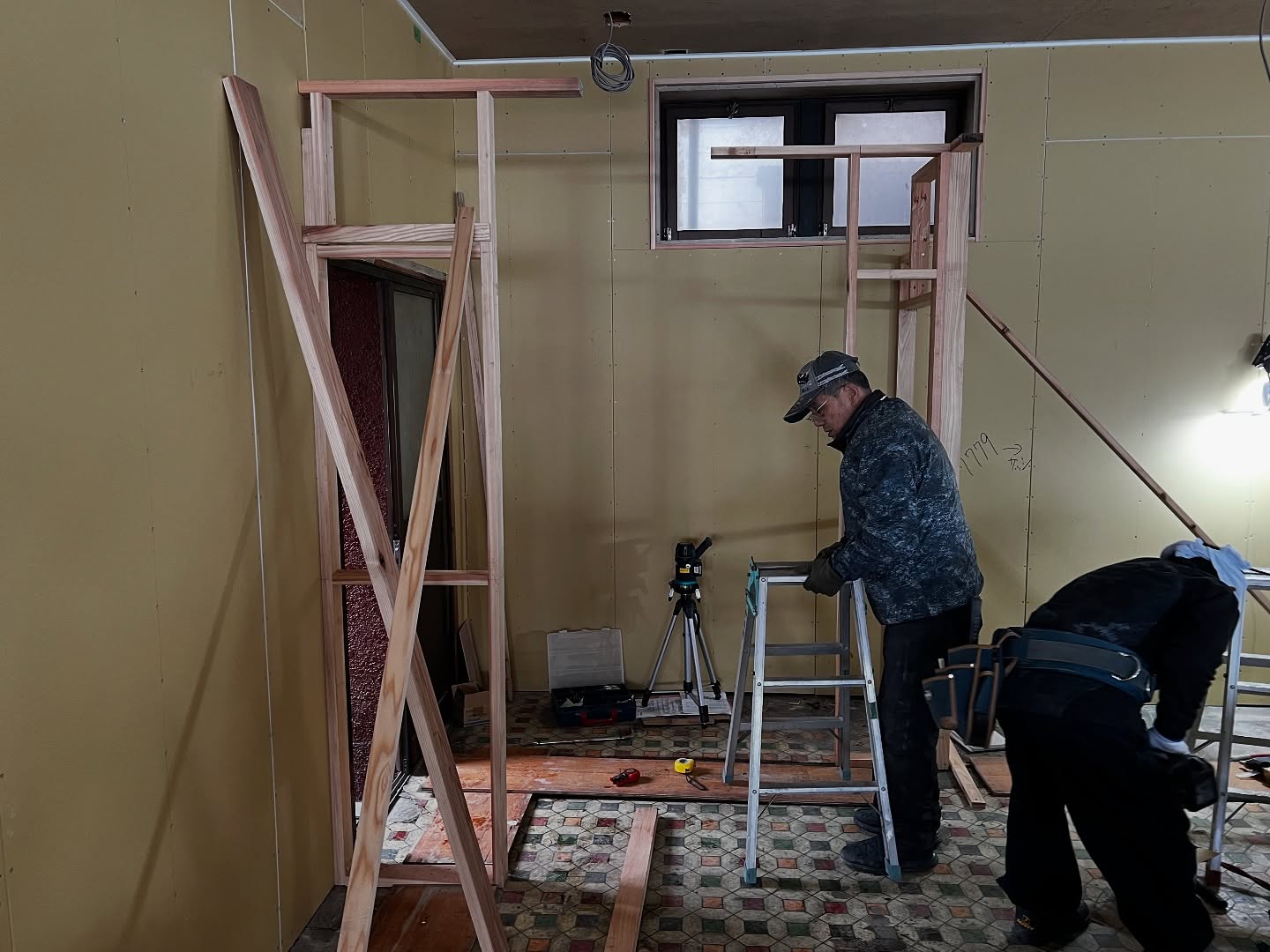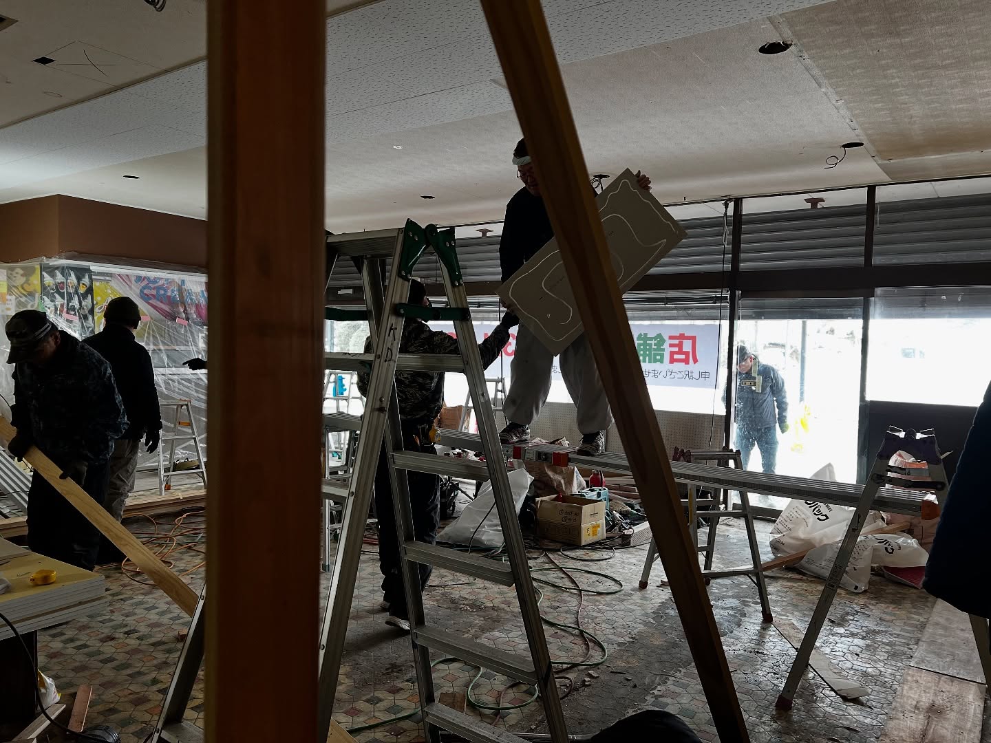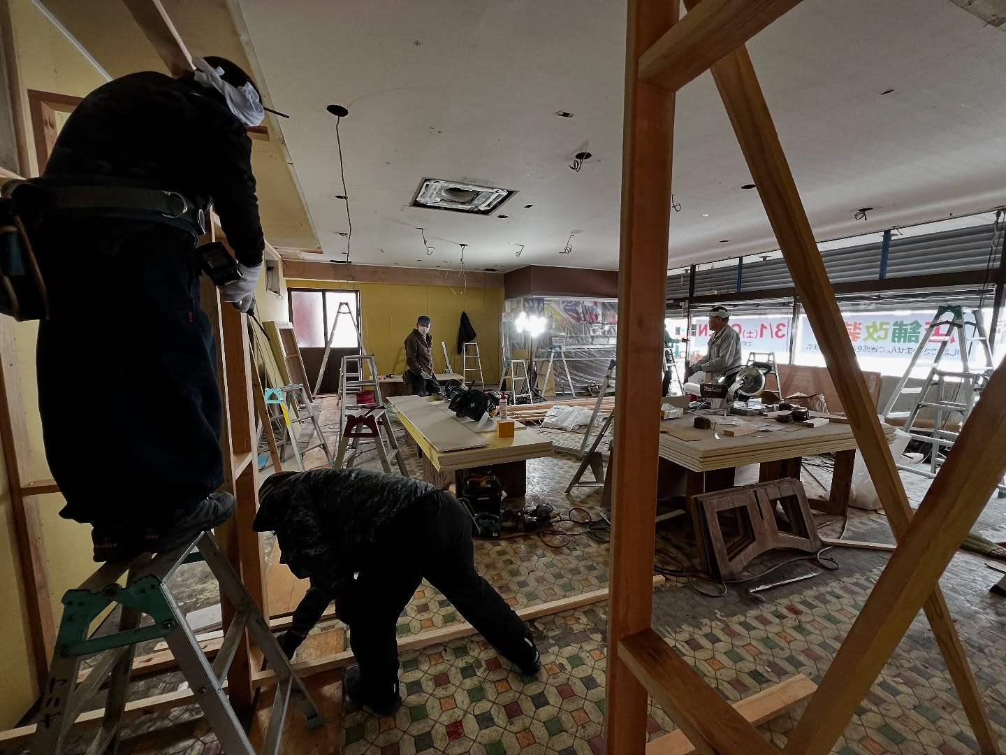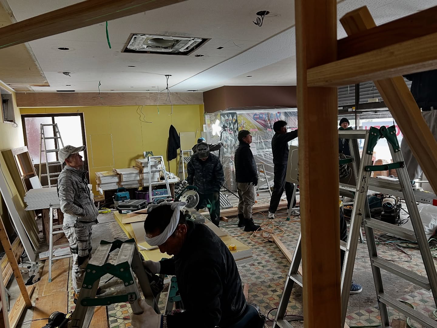- 改装2日目 天井張りまできました。