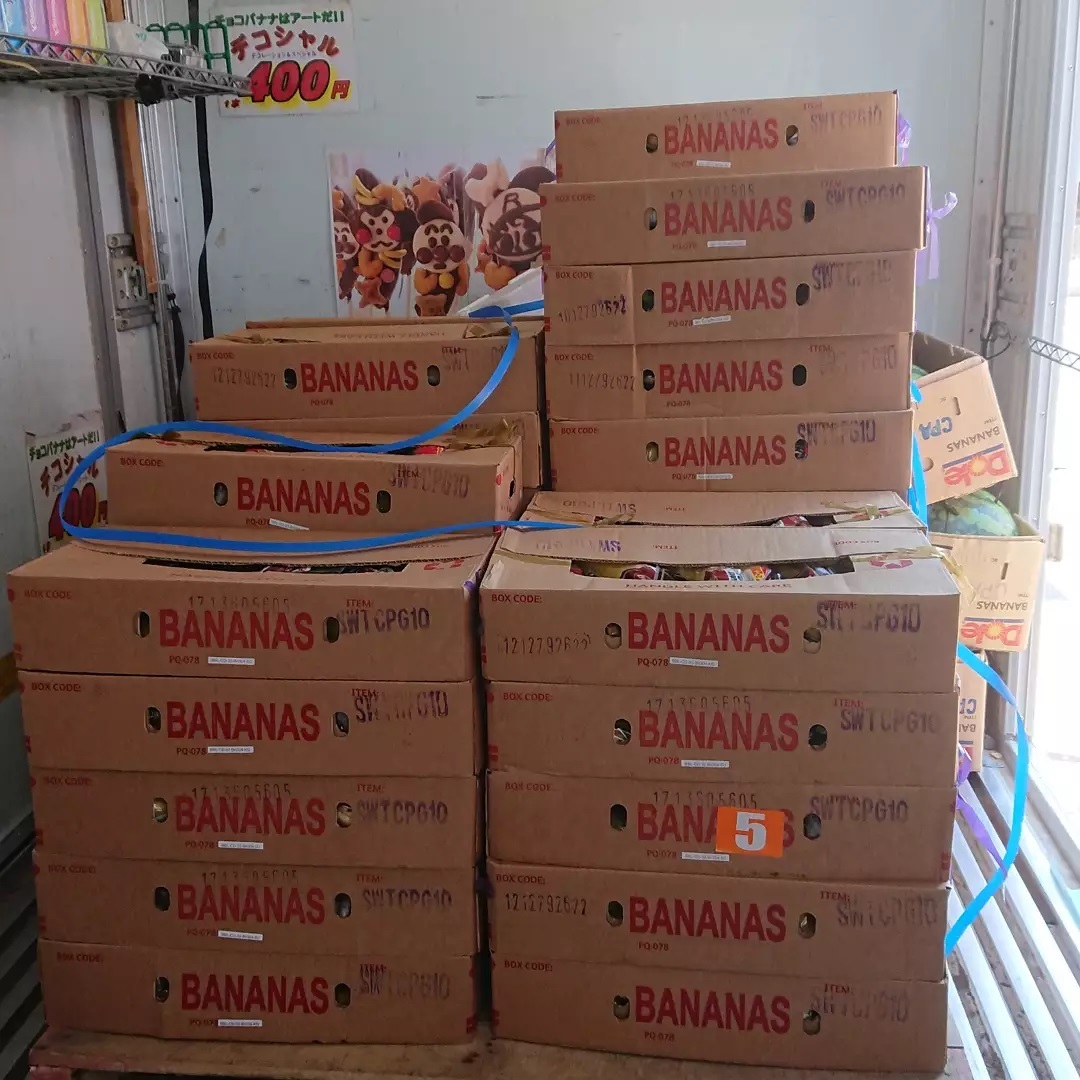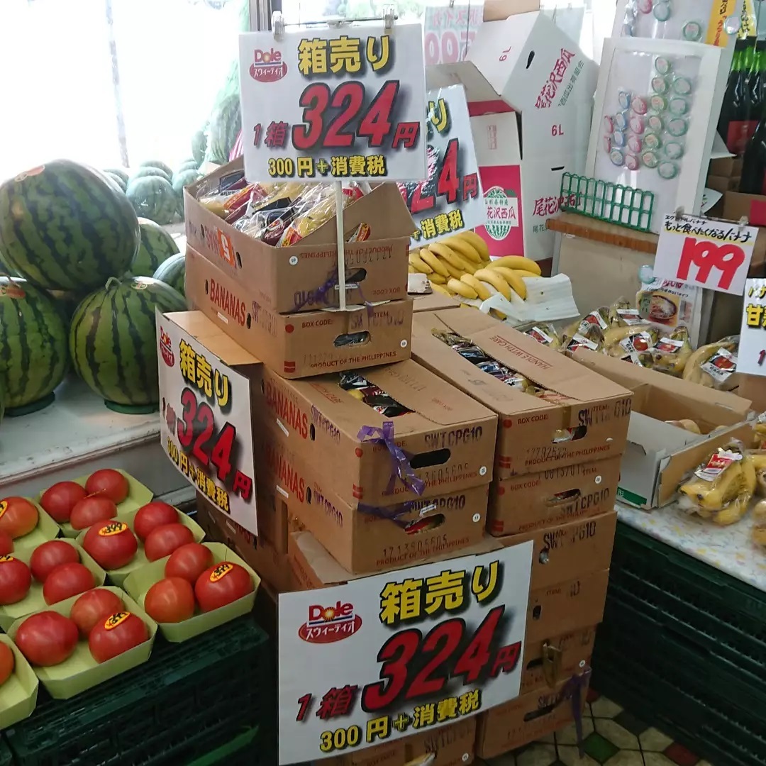 暑い️️ のでが売れません。 バナナの箱売りはトップギアに入りました。 スイーティオ 1箱324円 甘熟王は1袋89円 極撰バナナは1袋199円
