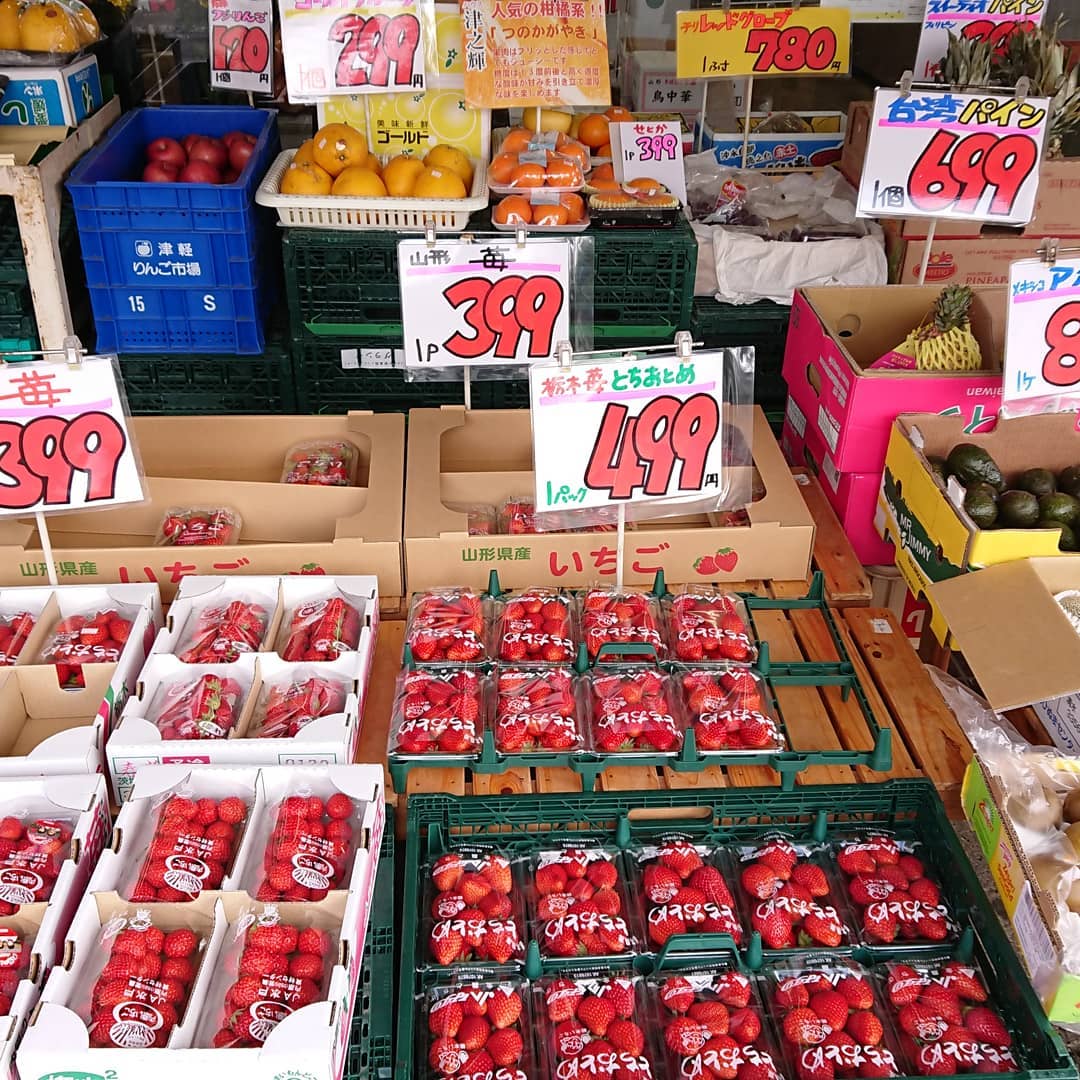 - 朝採り苺は売り切れました。明日4/11(土)am10:00にまた入ります。 山形、栃木、茨城産の苺はまだまだあります。結構値段も頑張っていますよ~。
