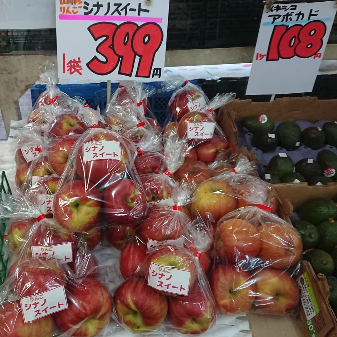 - 桃は食べ納めですよ~️ りんご『シナノスイート』試食したら旨いッけ️️おすすめ️️ チョコバナナはアートだデコシャル️はみんなの笑顔のために~️