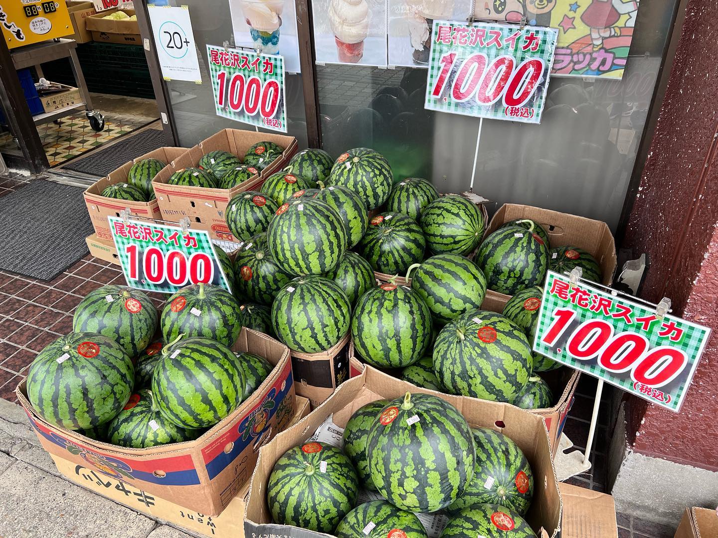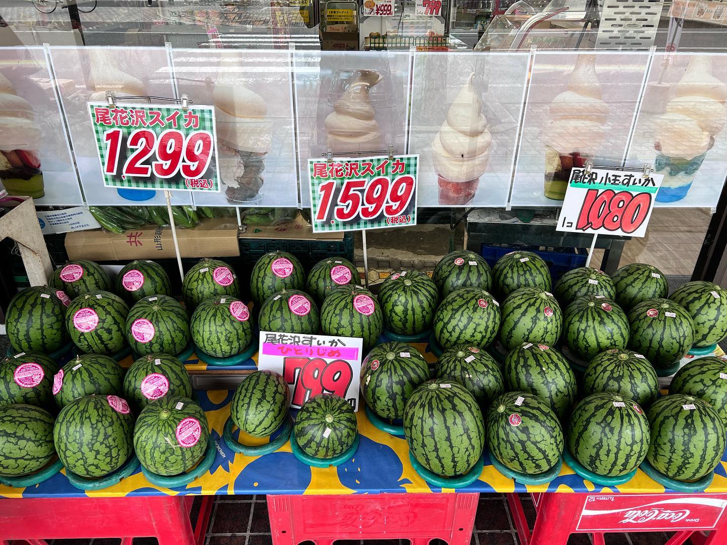 - 税込ジャスト1,000円️ 尾花沢スイカ『羅皇』入荷〜️ 最後の写真2枚は市場の様子です。
